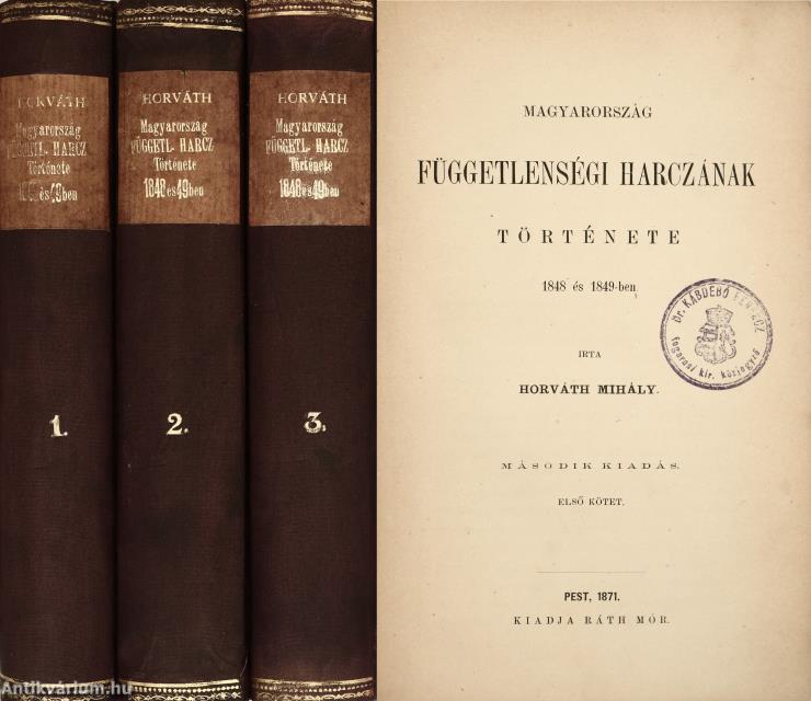 Magyarország függetlenségi harczának története 1848-1849-ben I-III. (egységes külön kötetekben). Írta: Horváth Mihály.