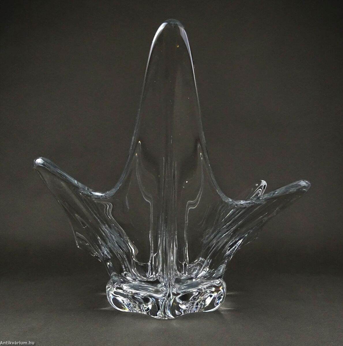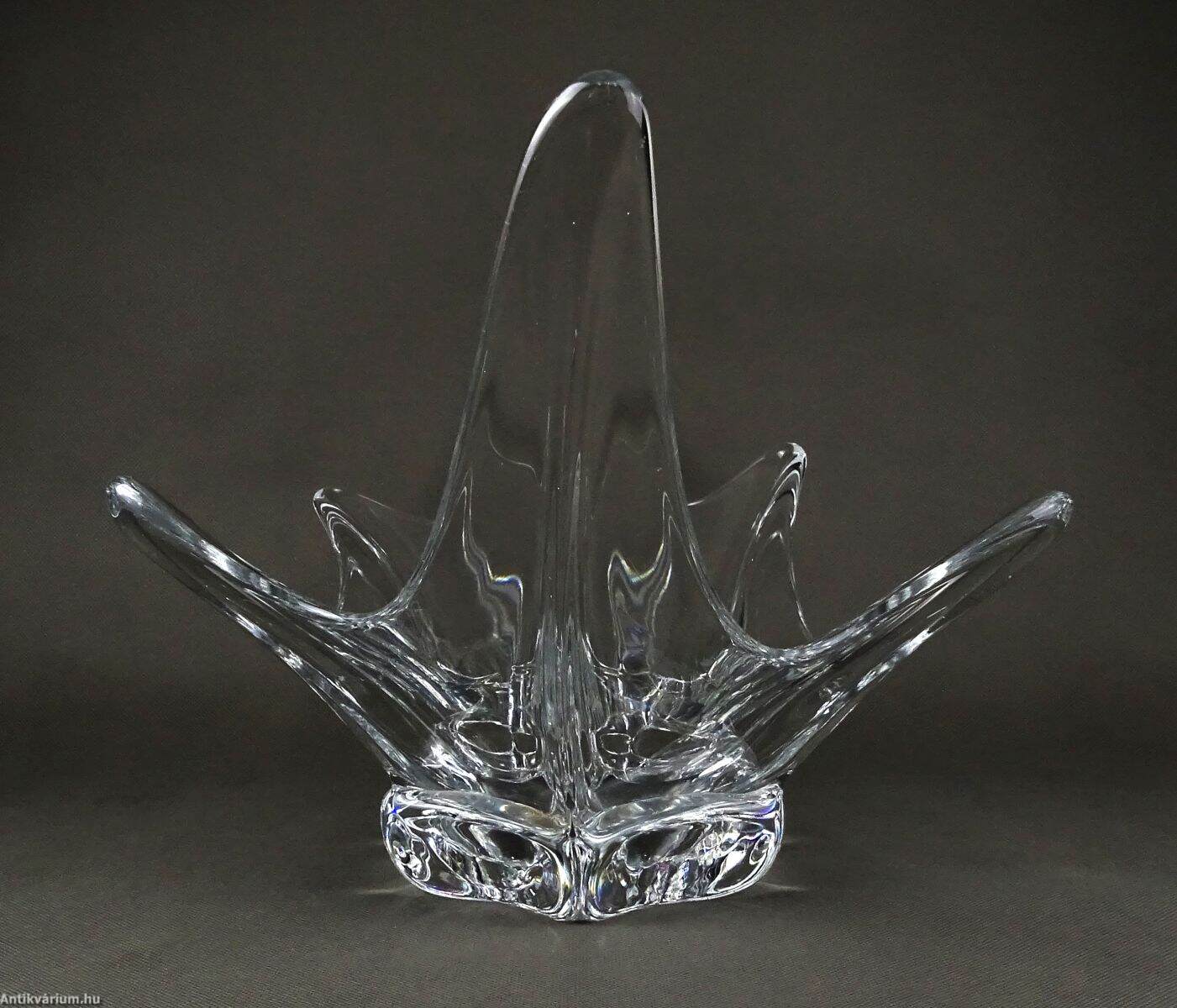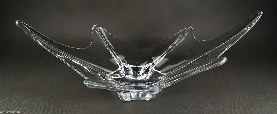 Hibátlan állapotú, a francia Baccarat műhelyből származó hatalmas, dekoratív üvegtál - asztal közép a 20. század közepéről újmodern stílusban. Kézzel formázott, kiváló minőségű átlátszó üvegből.