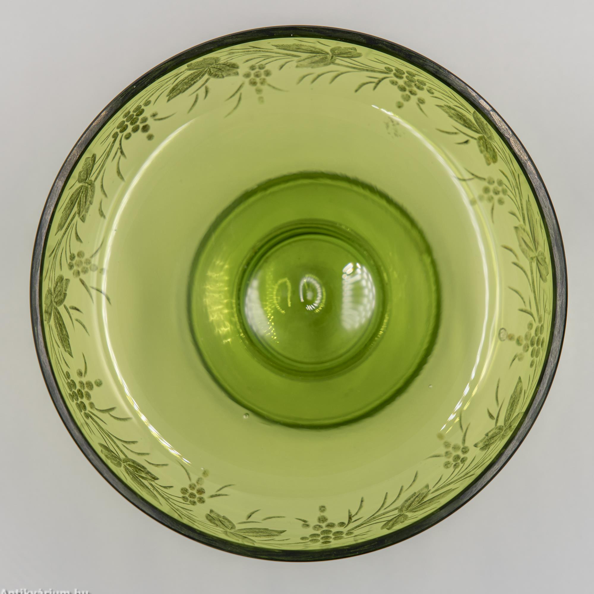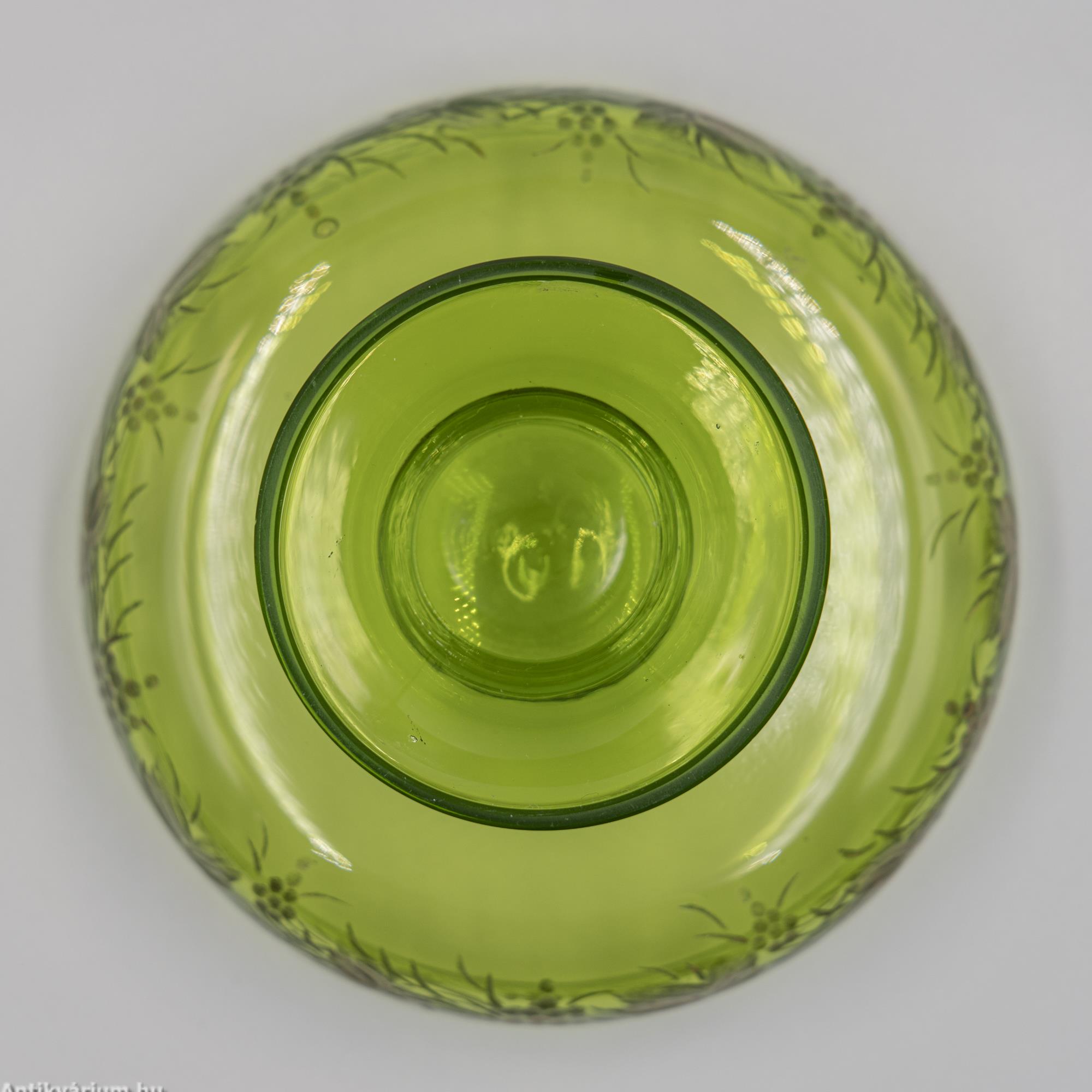 Moser szecessziós arany festéses zöld üveg ékszertartó tál 20. század eleje