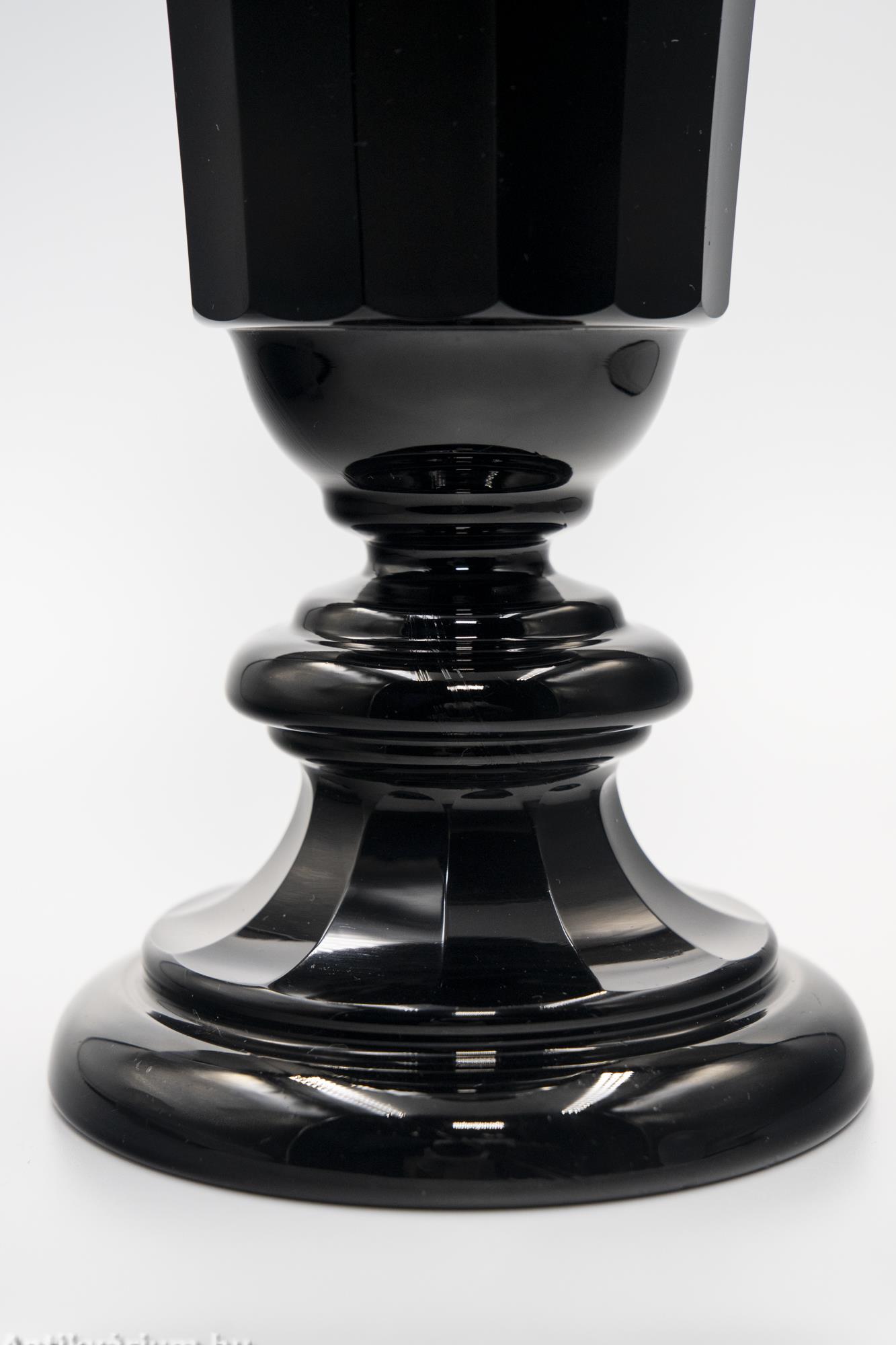 Moser Lithialin fekete üveg kehely 19. század közepe