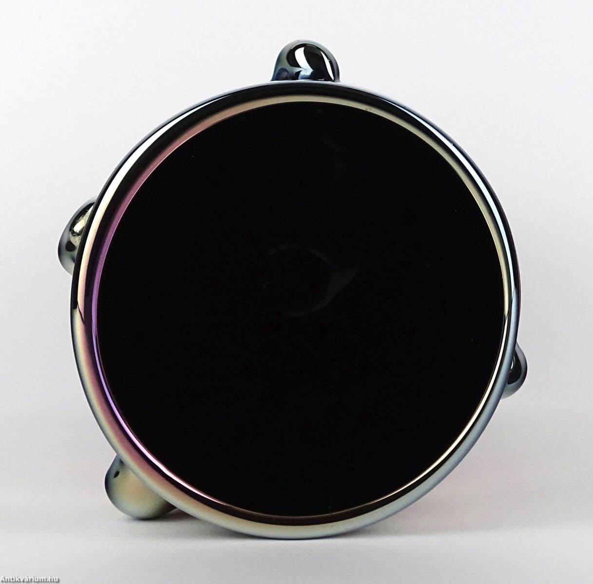 Hibátlan állapotú, fújt és kézzel formázott, irizált üveg váza 20. század közepéből. Az irizált (a görög „szivárvány” szóból) réteg színjátszós, fémes hatású, arany - kék - lila színű lenyűgöző fényjátékot eredményez a felületen. Létrehozásának leggyakoribb módja, hogy fémoxidokat gőzölnek a tárgy felszínére. Ez a különleges formájú és színhatású üveg váza mélykék színű, alsó részén hullámmintával, henger formájú oldalán pedig az üvegfelületet négy részre osztó üvegszál rátétekkel. Talpán a fújás helye kicsiszolva. Különleges megjelenésű, izgalmas hatású üveg alkotás. Studio üveg, azaz az üveg modern felhasználása művészi szobrok vagy háromdimenziós műalkotások készítésére. Az így elkészített üvegtárgyak szobrászati vagy dekoratív megjelenést kölcsönöznek. Elkészítésük kis műhelyekre korlátozódik, jellemzően a darabot tervező művész személyes közreműködésével. Ez ellentétben áll a műüveggel, amelyet gyári kézművesek készítettek, és az üvegművészettel, amely a történelem során készített művészi érdeklődésű üvegek teljes skáláját lefedi. A "stúdió üveg" kifejezést leginkább az 1960-as években készült munkákra használják, amikor a művészi üveggyártás iránti érdeklődés nagymértékben feléledt. A darabok gyakran egyediek, vagy kis limitált példányszámban készülnek.