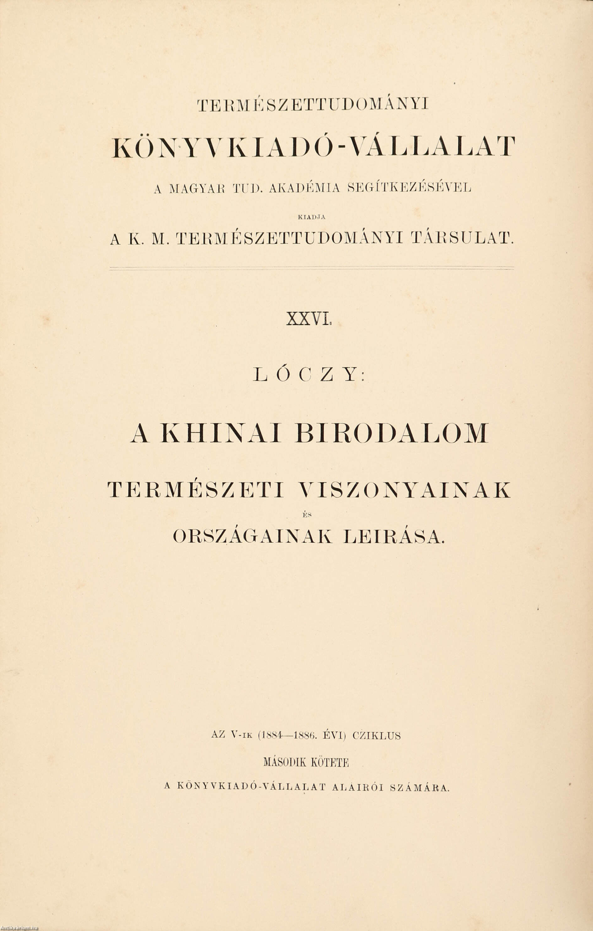 | Ritter, Humboldt és richtofen felfogása belső-Ázsia fiziografiai felosztására nézve; Magas-Ázsia lefolyástalan vidékei, a Han-hai, Sámo vagy Go-bi; a Tarim medenczéje és a Takla-Makán sivatag; a Dzungáriai medencze, a Tibeti felföldés a Kuku-nor vidéke | 27 |