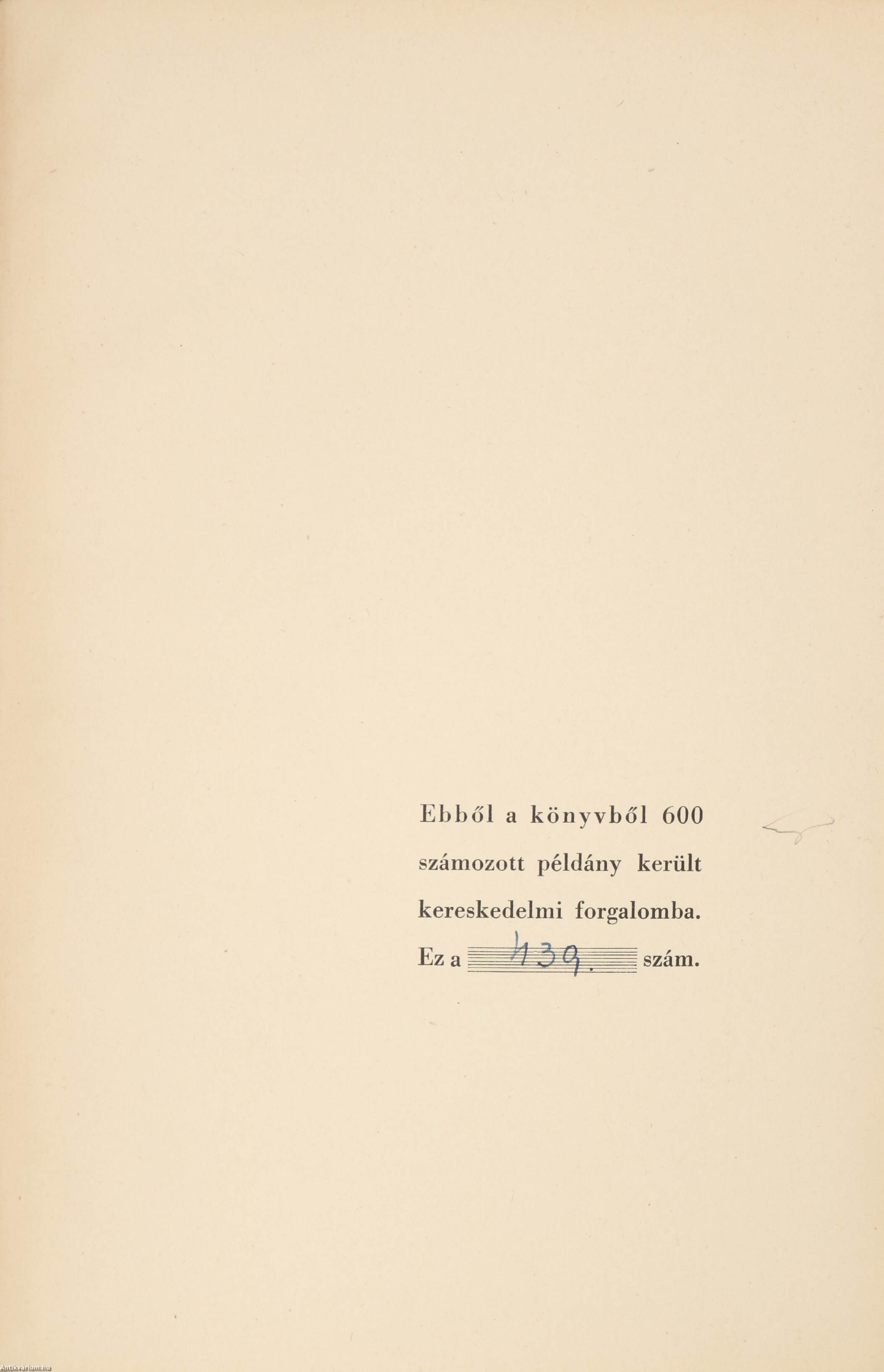 "Ebből a könyvből 600 számozott példány került kereskedelmi forgalomba. Ez a 439. számú példány.