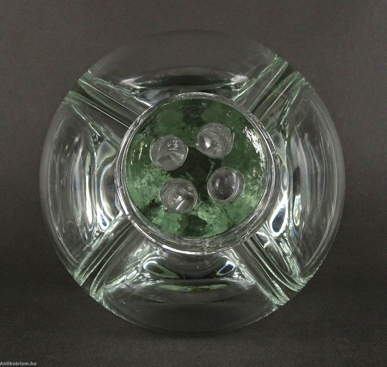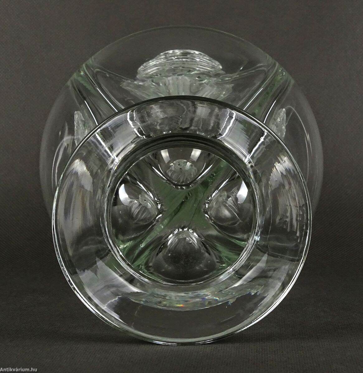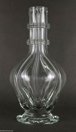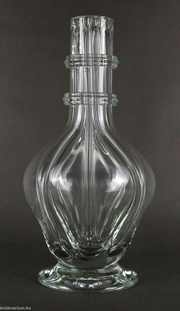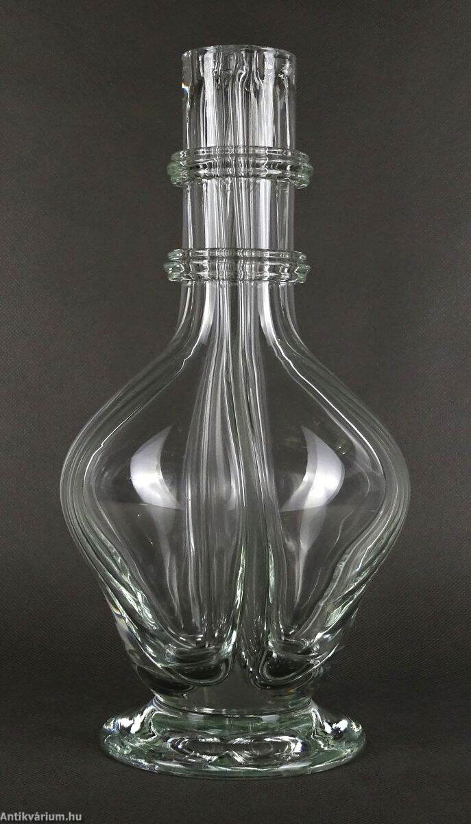 Hibátlan állapotú üveg palack - dekanter a 19. századból. Kézzel fújt és formázott, belső részén négyes osztással, amely lehetővé tette négy különböző folyadék tárolását. Eredetileg parafadugókkal zárták el a nyílásokat.
