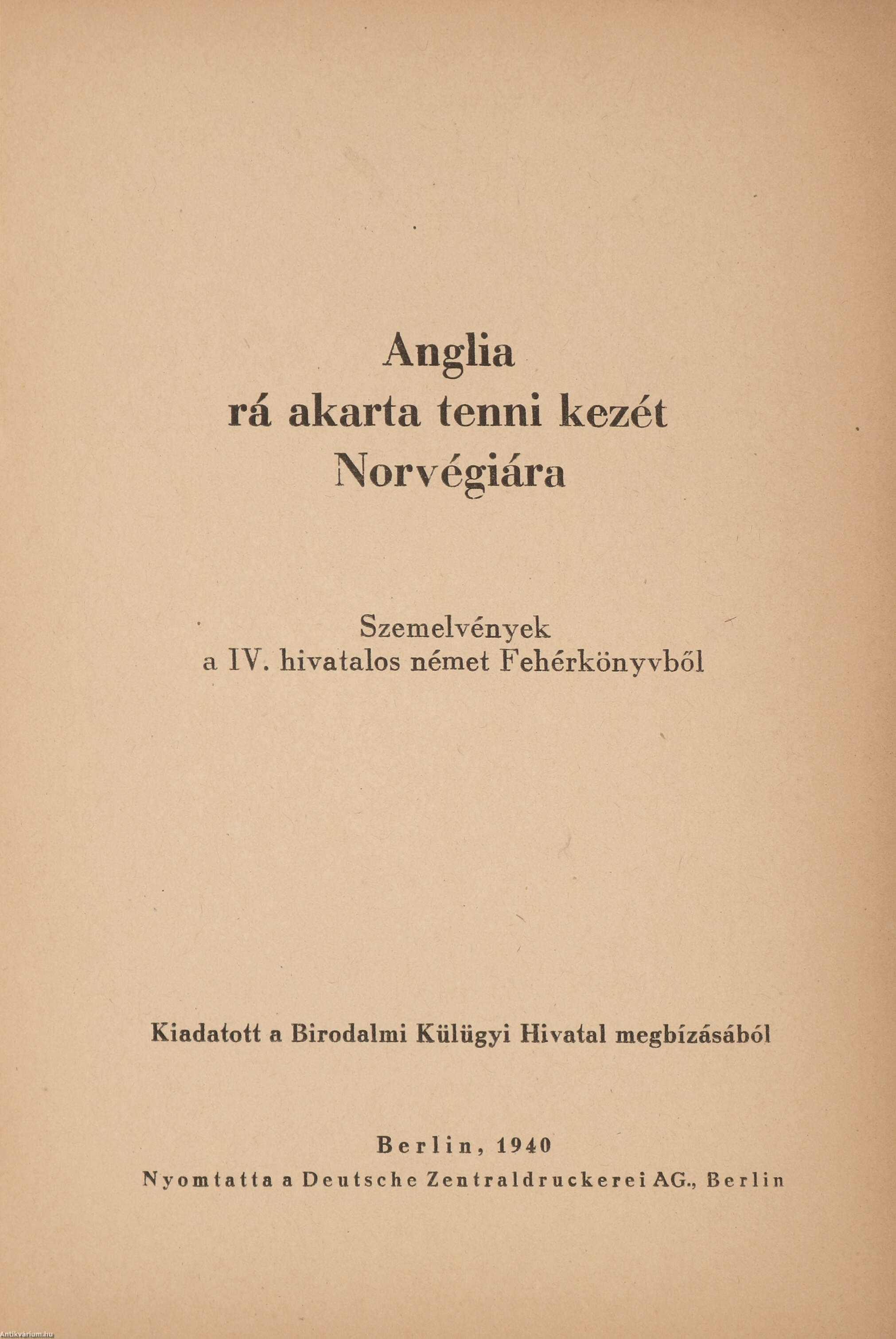 Berlin, 1940, Birodalmi Külügyi Hivatal (Deutsche Zenrtaldruckerei AG., Berlin), 64 p.