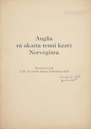 Anglia rá akarta tenni kezét Norvégiára. Szemelvények a IV. hivatalos német Fehérkönyvből.