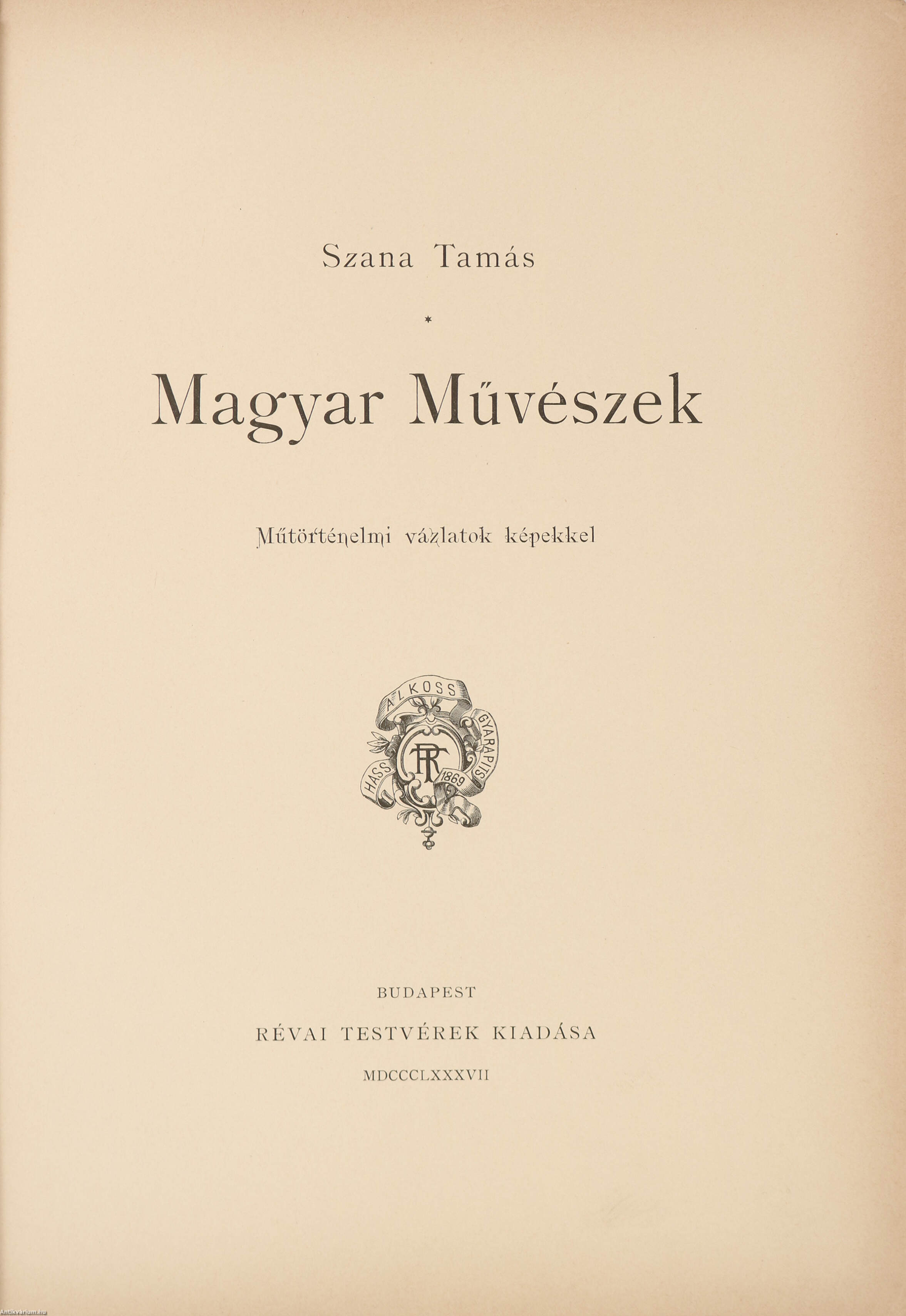 Első kiadás. Magyar művészek. Műtörténelmi vázlatok képekkel. Írta és szerkesztette: Szana Tamás.