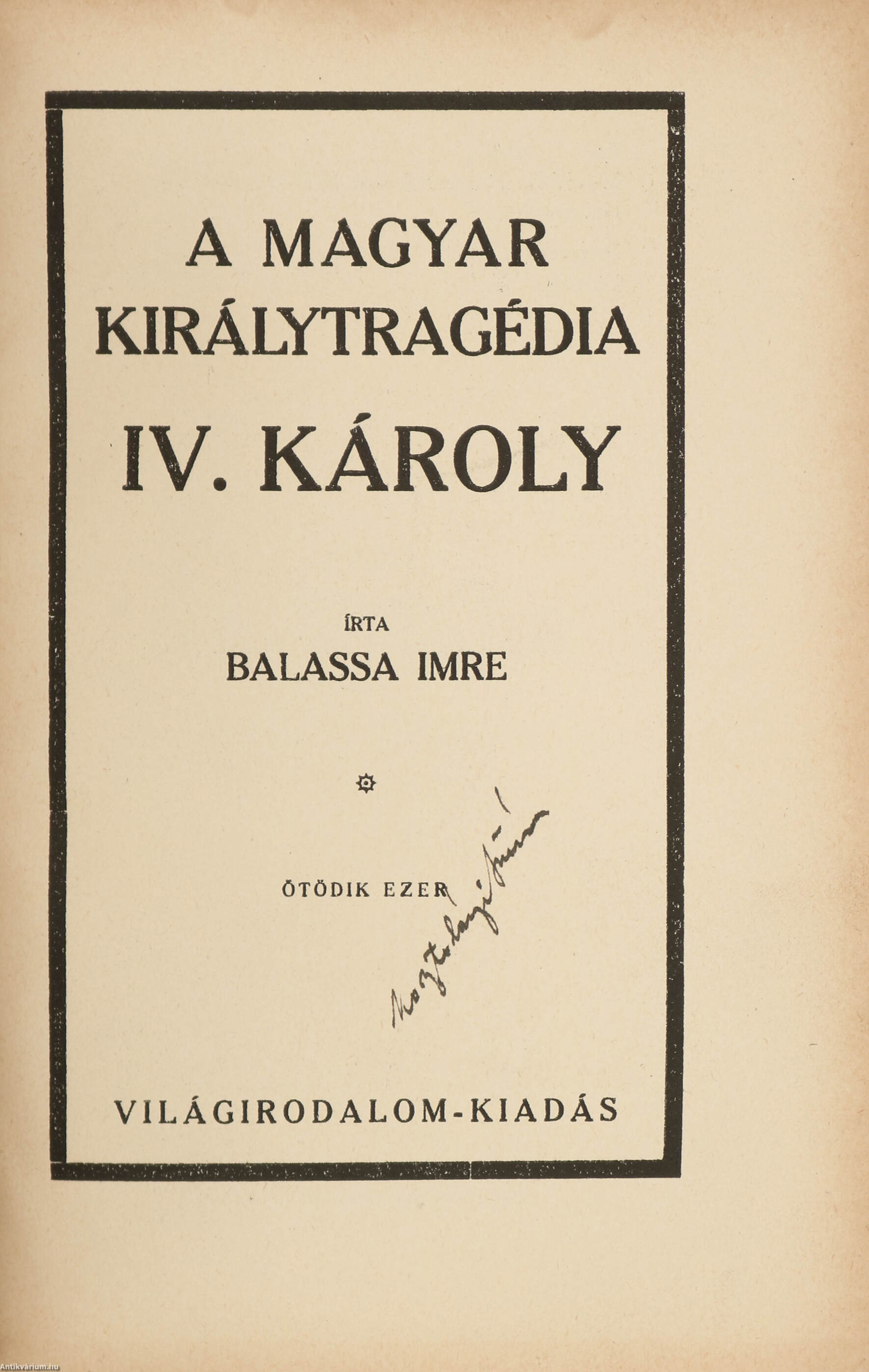 Kosztolányi István könyvtárából. A magyar királytragédia. IV. Károly. Írta: Balassa Imre.