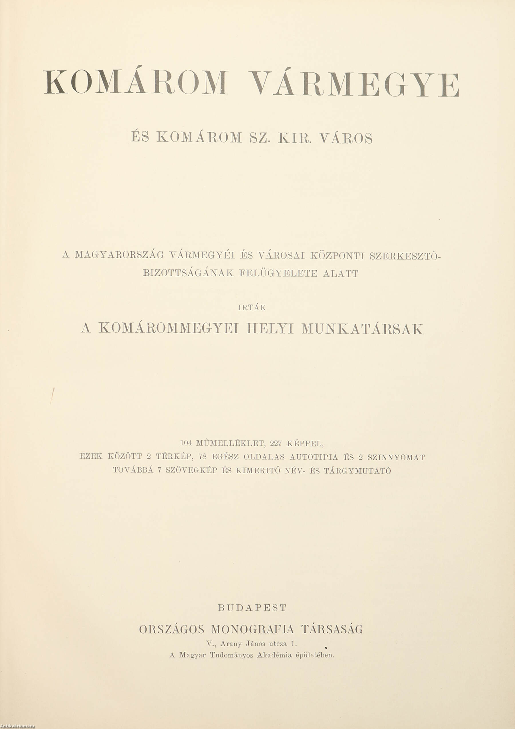 Komárom vármegye községei. Irta