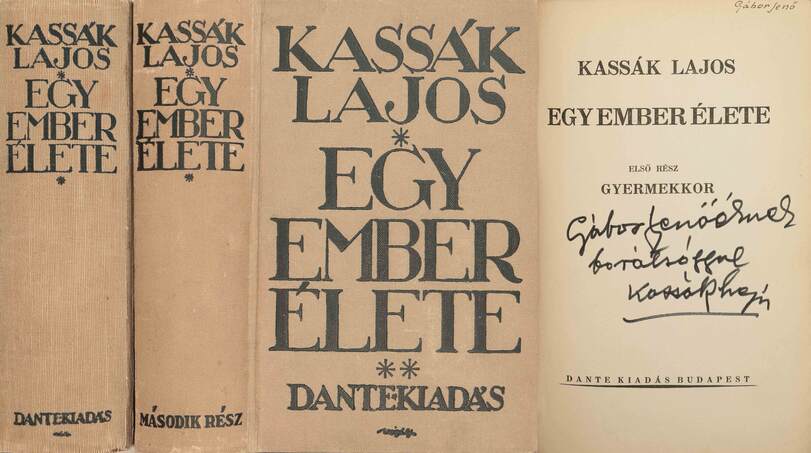 Szerző által dedikált példány. Első kiadás. Egy ember élete. Önéletrajz I-II. (két egységes külön könyvben). Írta: Kassák Lajos.
