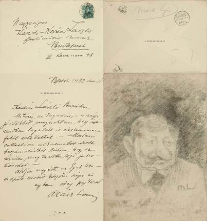 Budapest, 1932, Márk Lajos levele és karikatúrája Kézdi-Kovács Lászlóról, [1] p.