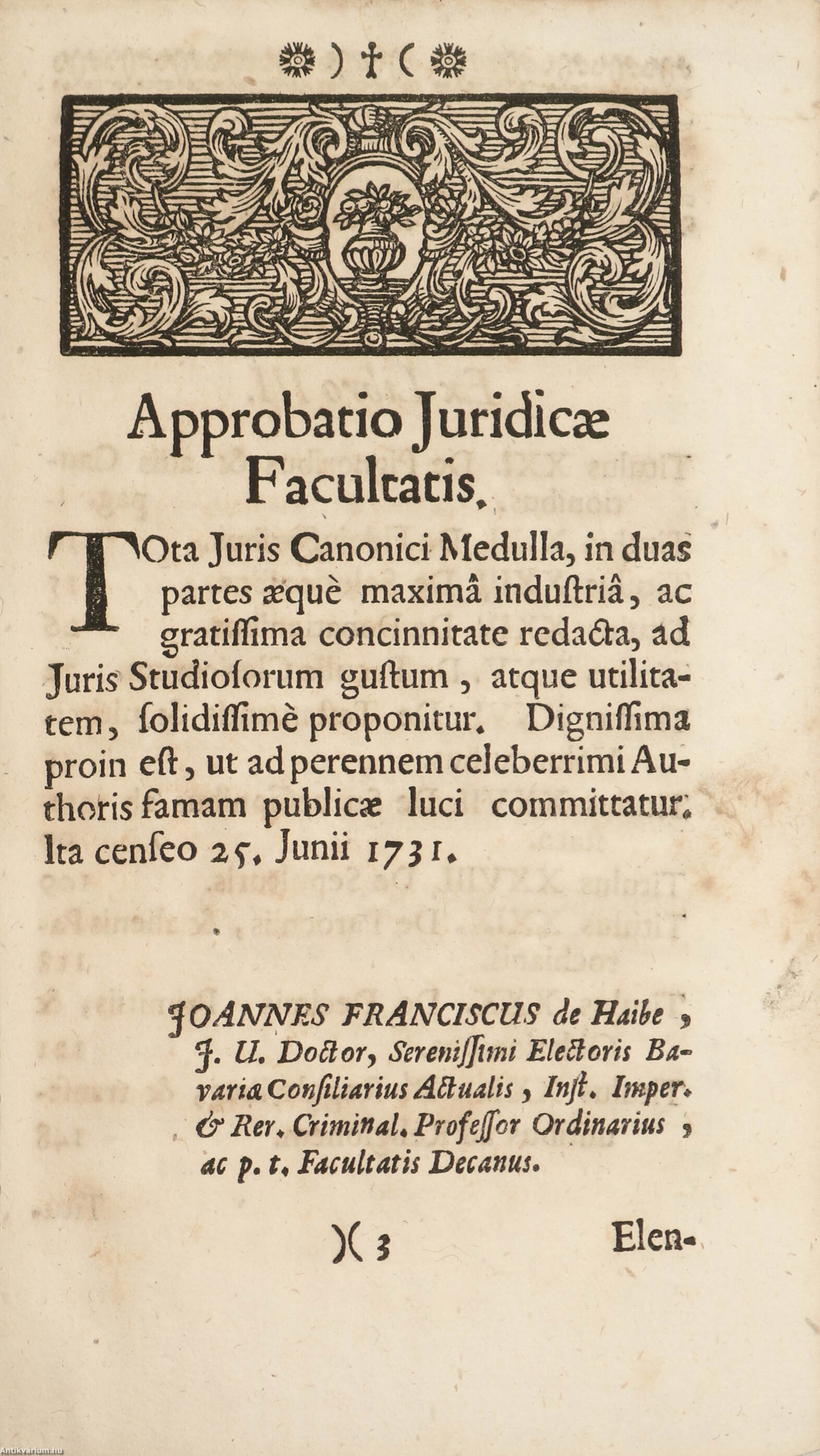 Pichler, Vitus: Candidatus abbreviatus jurisprudentiae sacrae, hoc est, juris canonici, secundum Gregorii papae IX. libros V. Decretalium explanati summa, seu Compendium I-II.