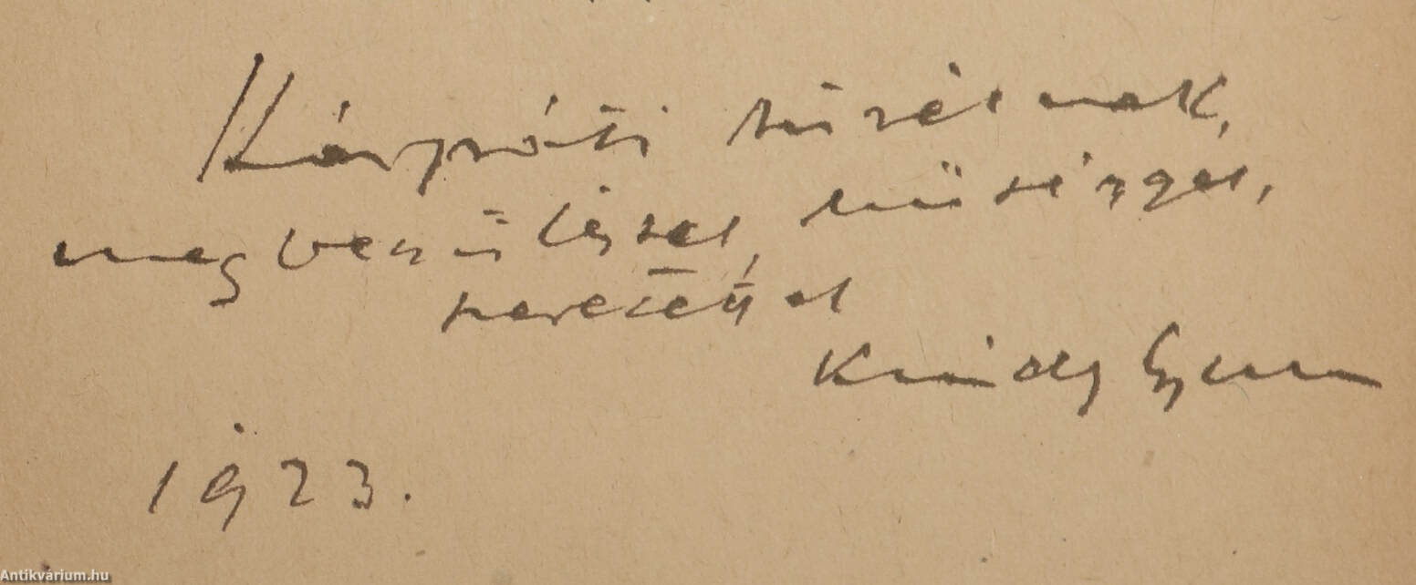 Kárpáti Aurélnak, / megbecsüléssel, hűséggel, / szeretettel / Krúdy Gyula / 1923.