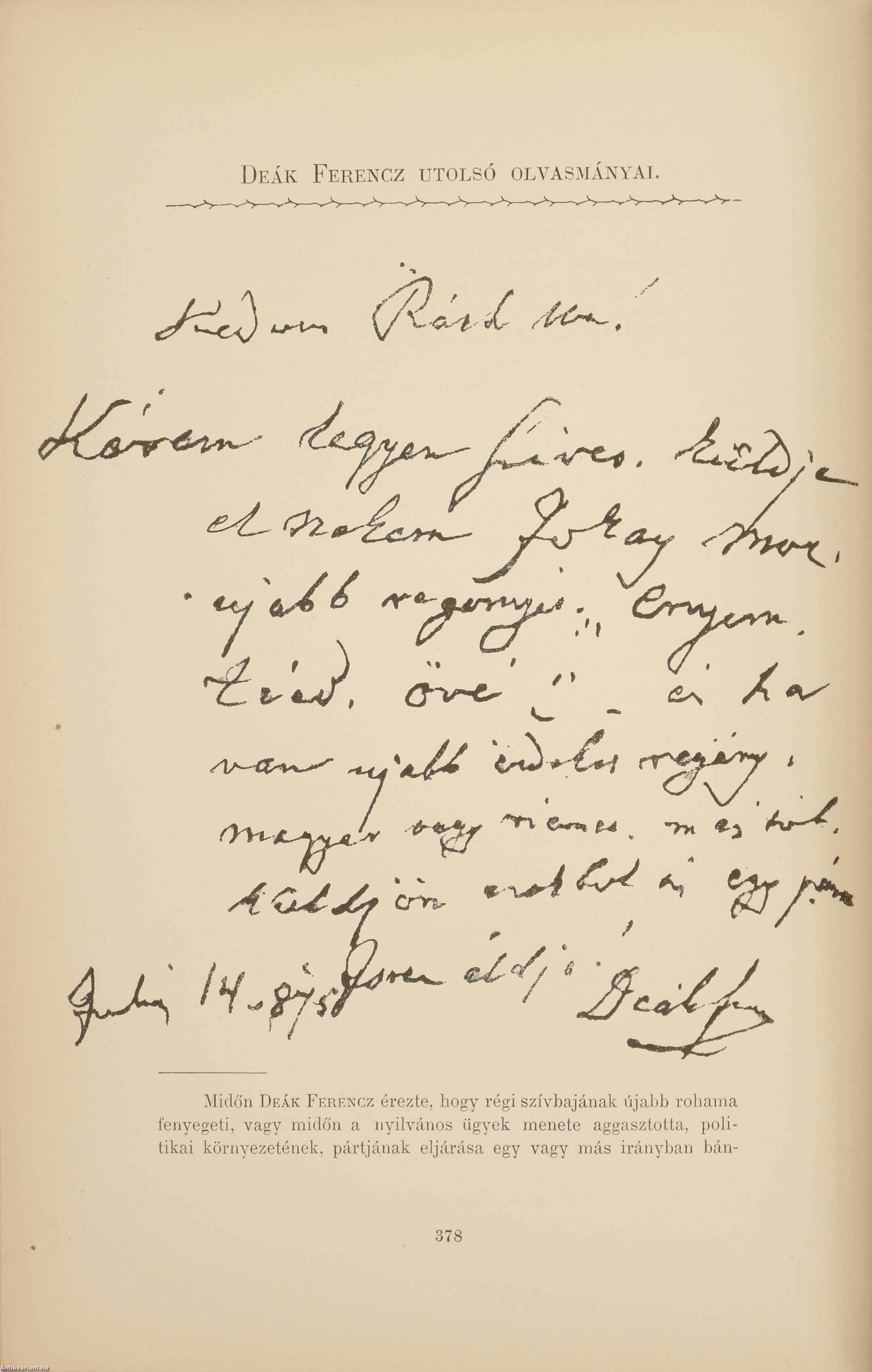 Szegedi reáliskolai Deák-körnek. Pesten, máj. 14-én 1867. 324