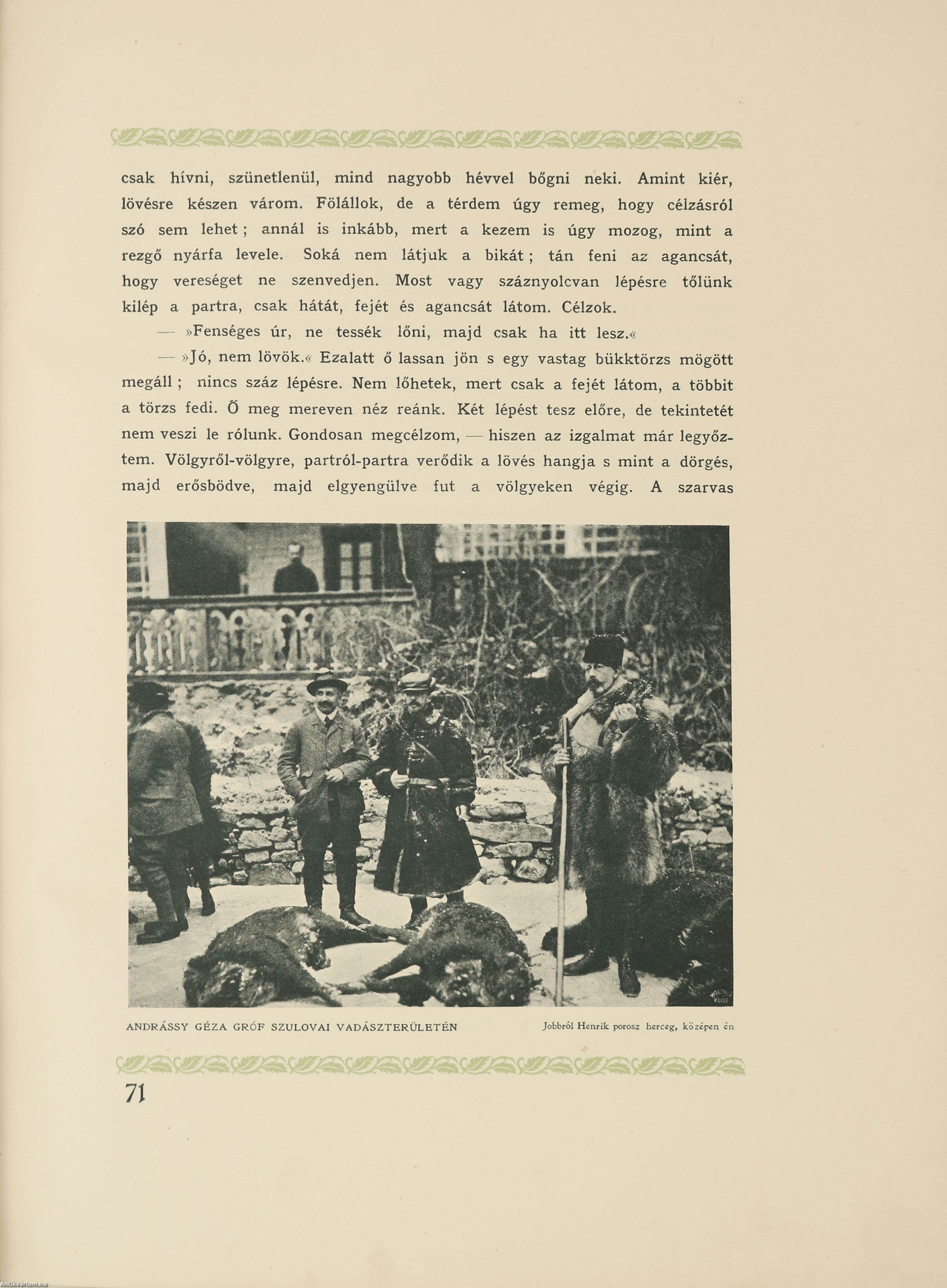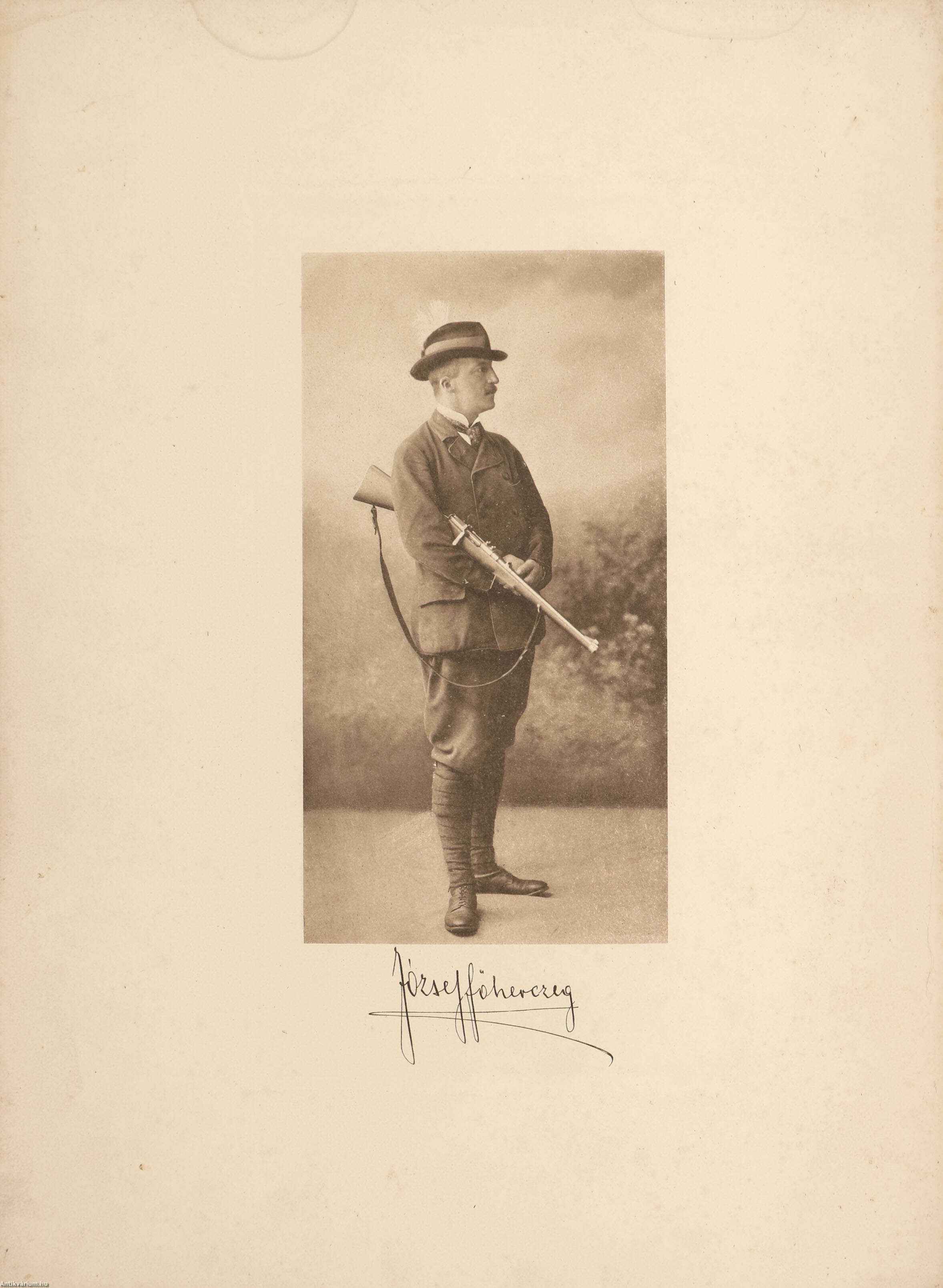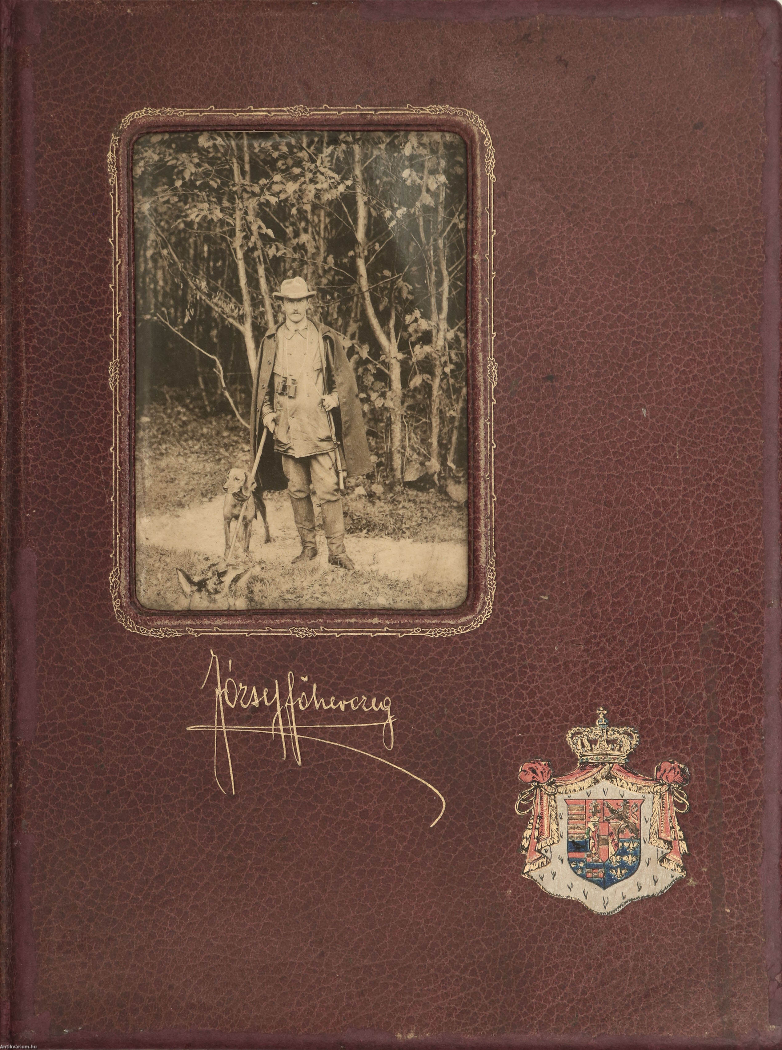 Kiadói restaurált bőrkötésben lévő példány színes, részletgazdag nemesi címerrel, József Főherceg aranyozott aláírásával és fekete-fehér vadászfotójával ellátott címfedéllel, aranyozott feliratozású könyvgerinccel, illusztrált, aranyozott, kiadói előzéklapokkal, néhány sérült lappal, hiánytalan állapotban.