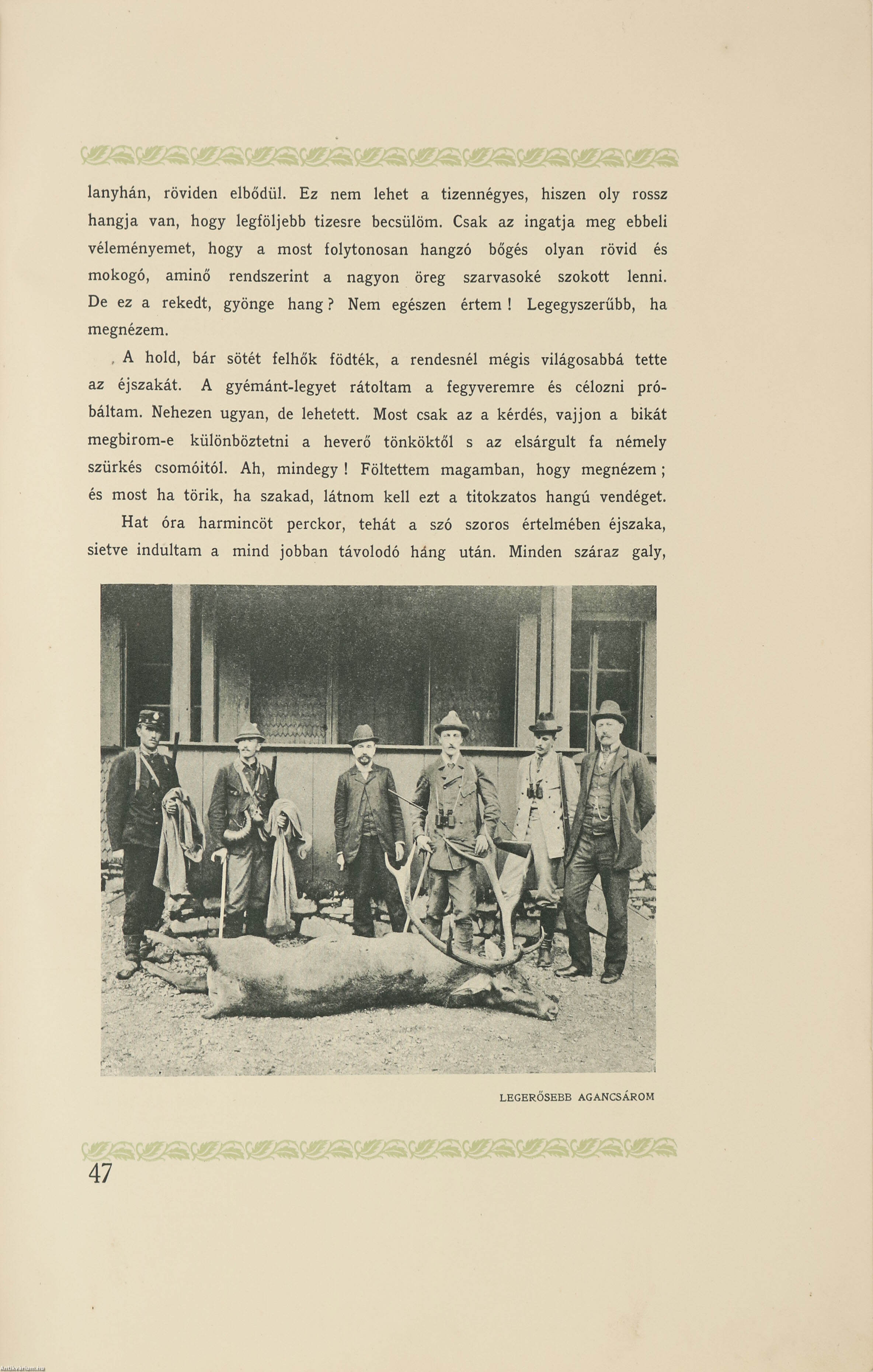 A mi, köztünk élő és szívünkhöz forrott, magyar királyi hercegünkről egész Magyarország úri és vadászközönsége tudja, hogy a legjobb, legigazibb vadász, aki az ö gyönyörű erdőségeiben, napsugaras, vagy zord őszi esővel verdesett tájakon egyképen áldoz Diánának és akárhányszor egymaga indul a bérc rengetegébe, hogy találkozója lehessen ott valamely nemes és ritka vaddal. - Ilyenkor nincs a számára leküzdhetetlen fáradság, sem legyőzhetetlen nehézség; ilyenkor a lehetetlent is valóra váltja, amidőn a hiúz szemével, a róka furfangjával, a nyest könnyedségével, a hegyi szarvas rugalmasságával és izomerejével s az elszánt és tökéletes vadászember szívósságával halad célja felé a sokszor szinte járhatatlan szakadékok között, ahol már cserkésző út sincsen s ahol az ősbozótban bőg, ordít, nyög, riaszt, haragszik, ,ömleng, párbajra hív és életre-halálra verekszik vetélytársával a szerelmes nagyúr, - az erdők koronás királya, a szépséges, hatalmas, daliás szervasbika.