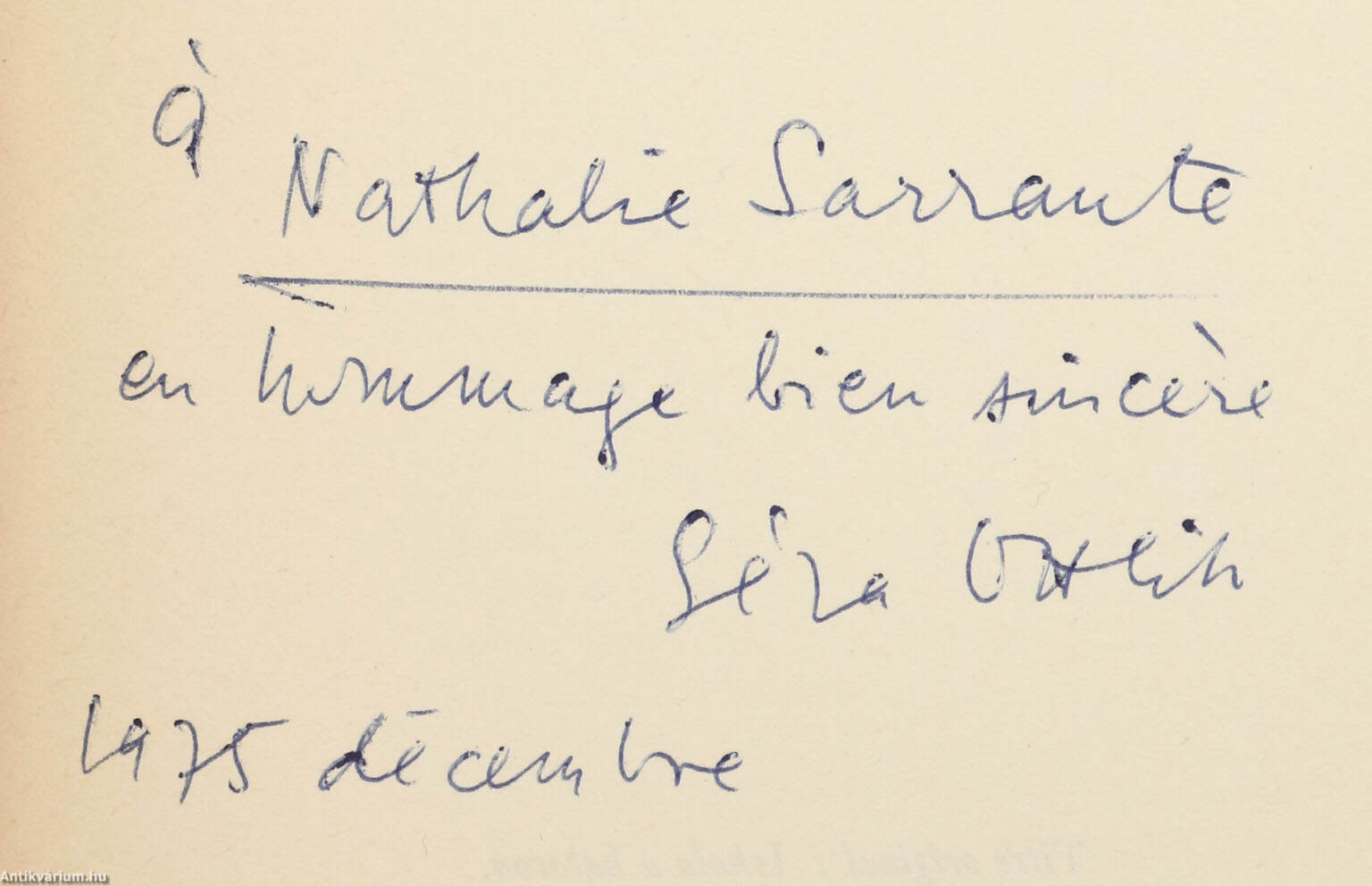 Nathalie Sarraute-nak, őszinte tisztelettel Ottlik Géza 1975 december