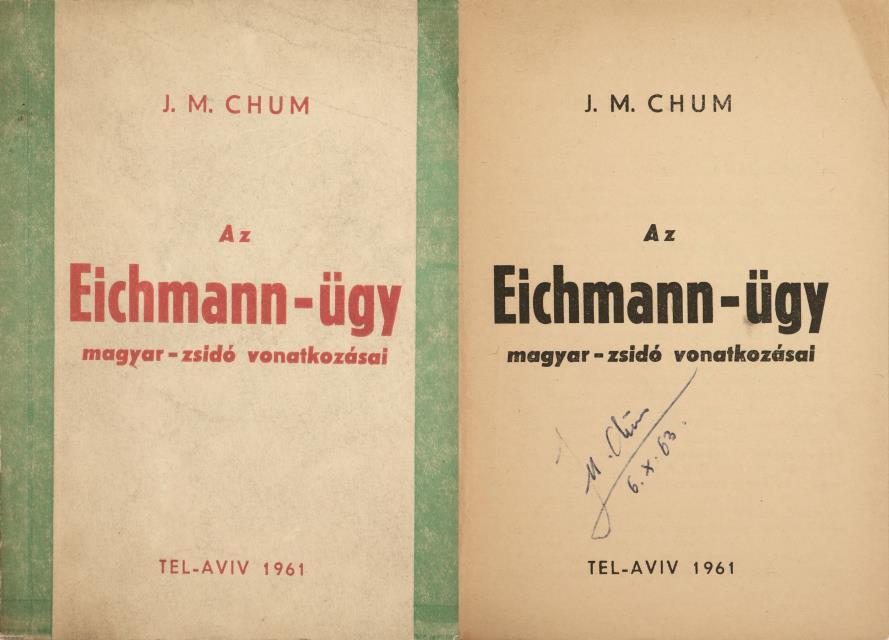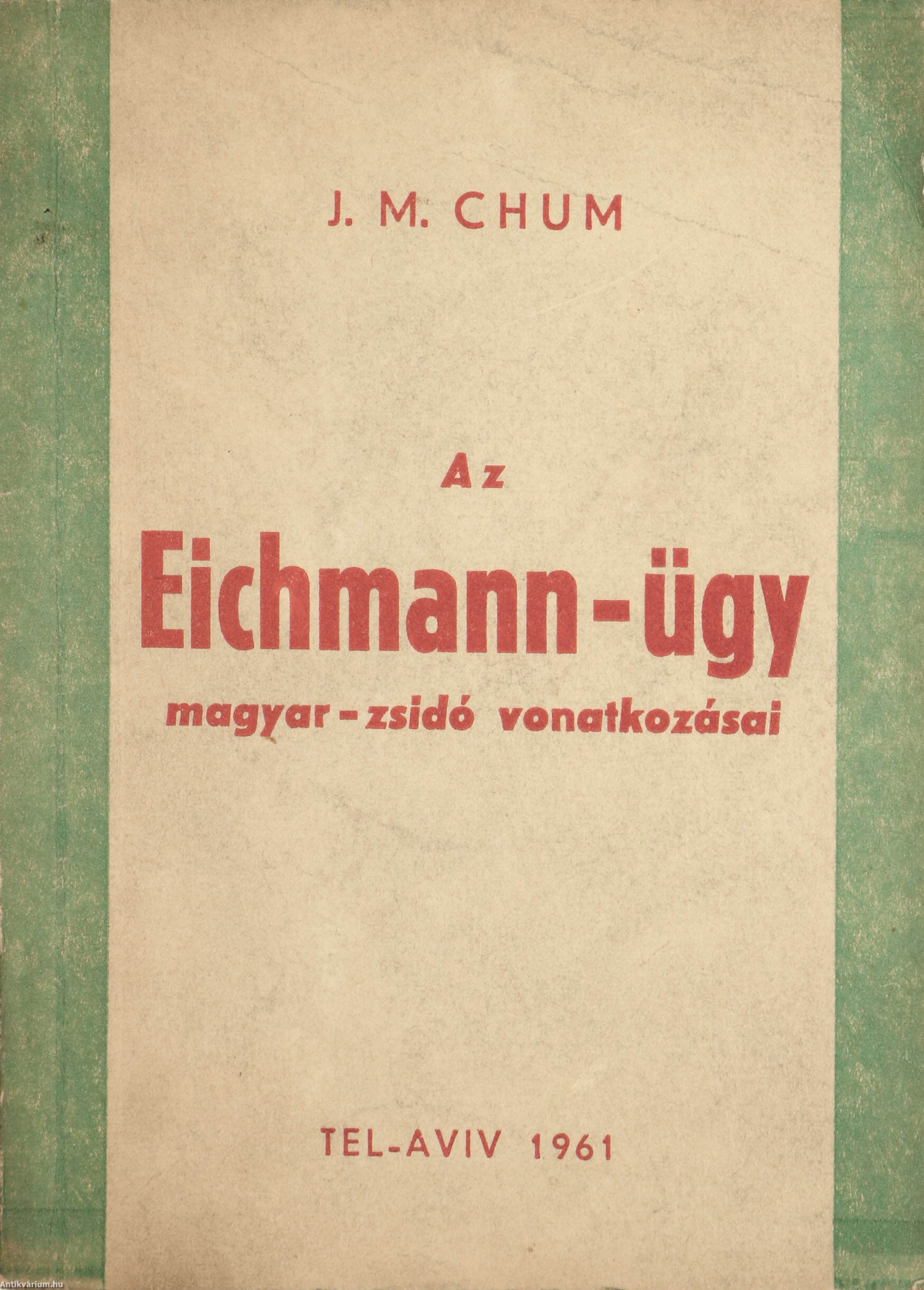 Szerző által aláírt példány. Első, emigrációs kiadás. Az Eichmann-ügy magyar-zsidó vonatkozásai. Írta: J. M. Chum.