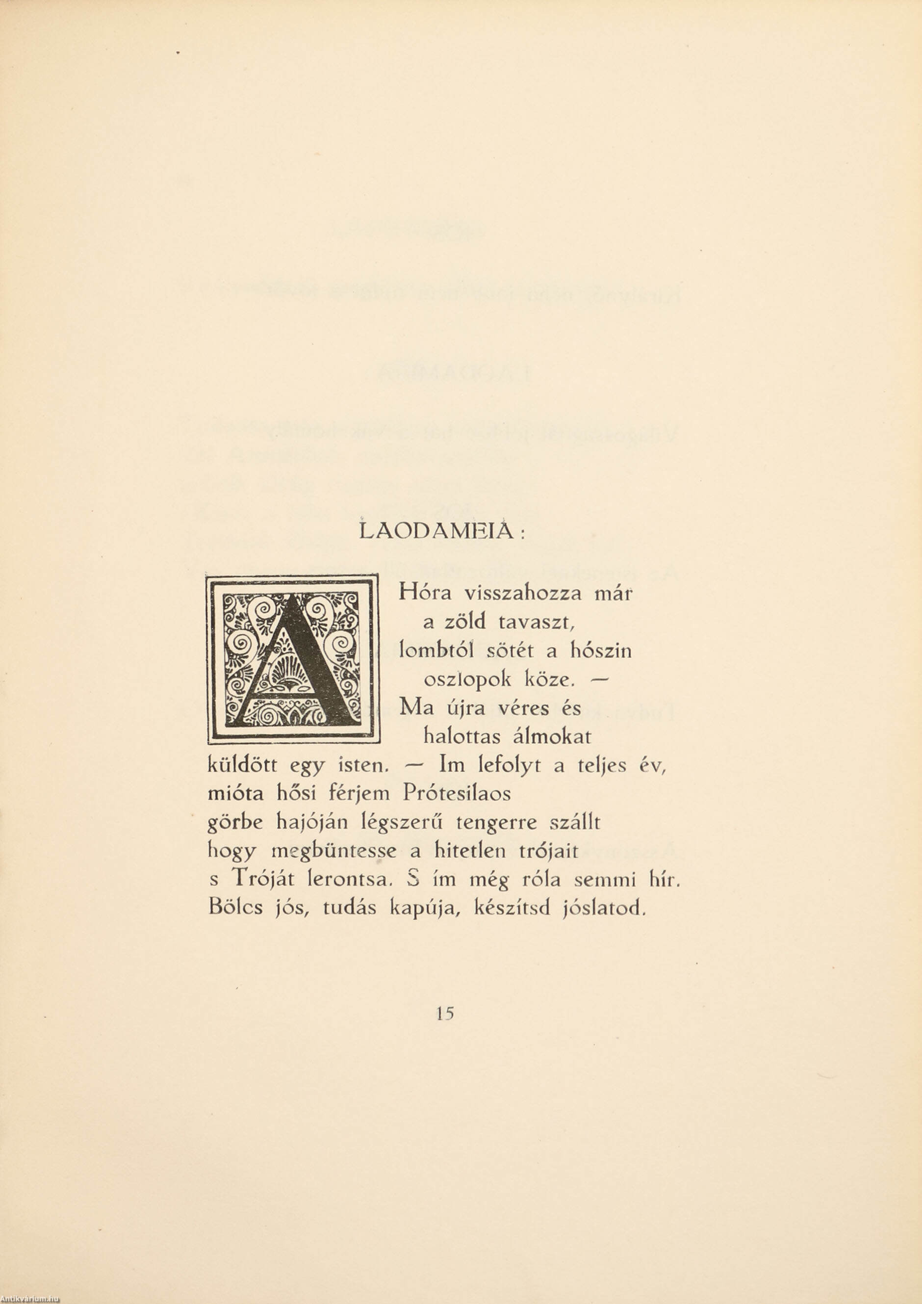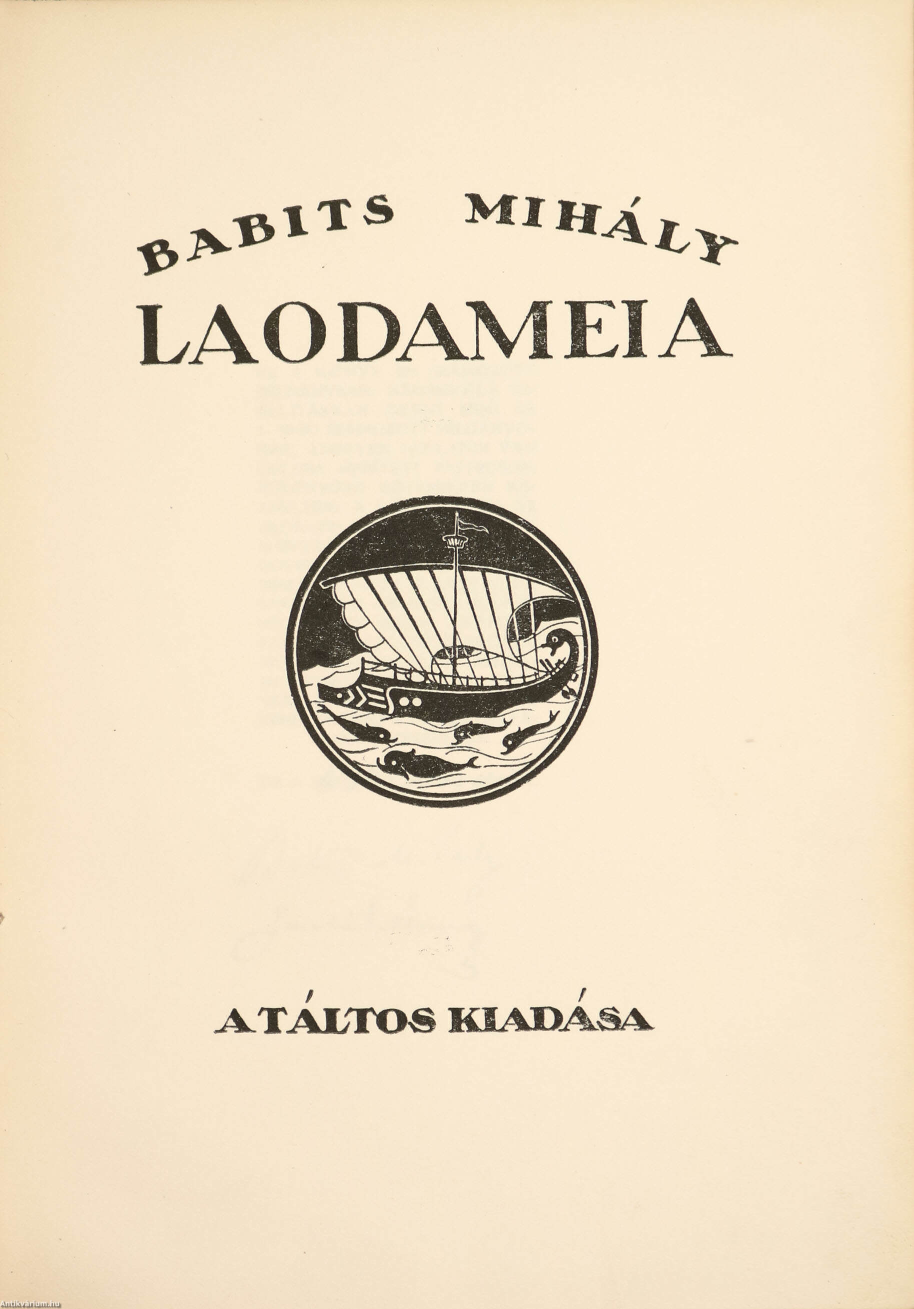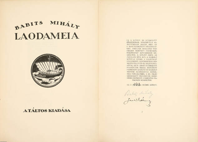 A szerző és a grafikus által aláírt példány. Számozott, bibliofil, első kiadás. Laodameia. Írta: Babits Mihály.
