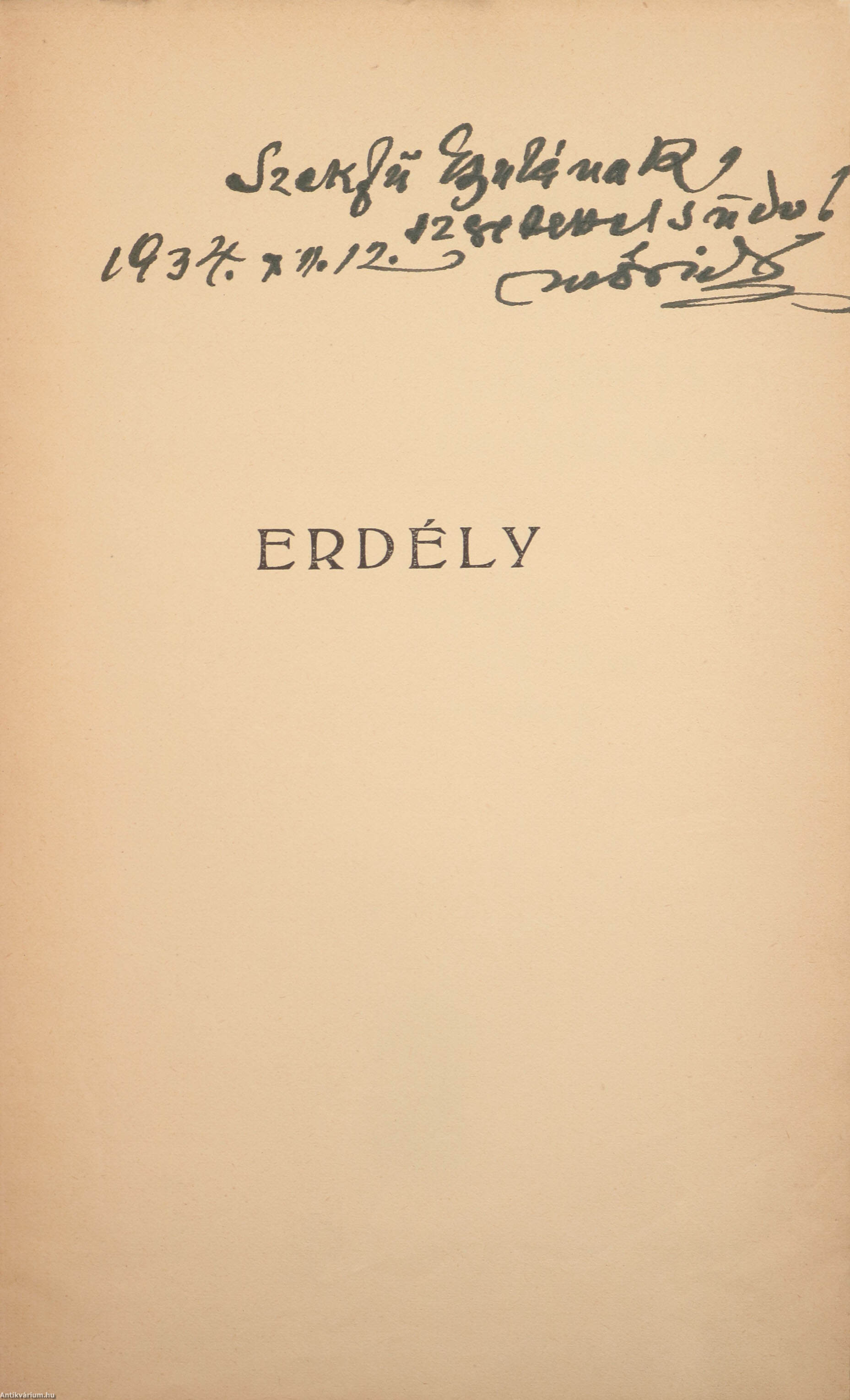 Móricz Zsigmond: Erdély I-III. (Szekfű Gyulának dedikált példány)