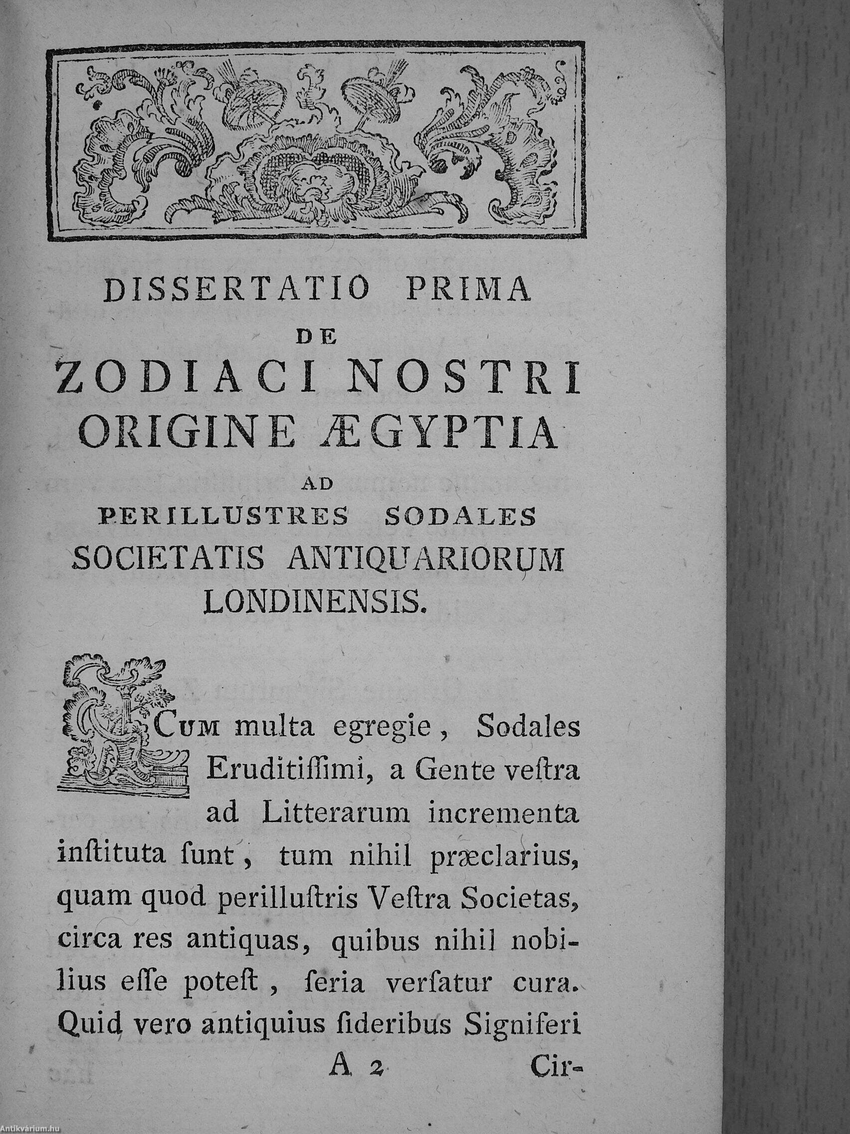 Latin nyelvű, egyiptológiával foglalkozó munka a 18. századból. Néhány fekete-fehér könyvdísszel és iniciáléval.