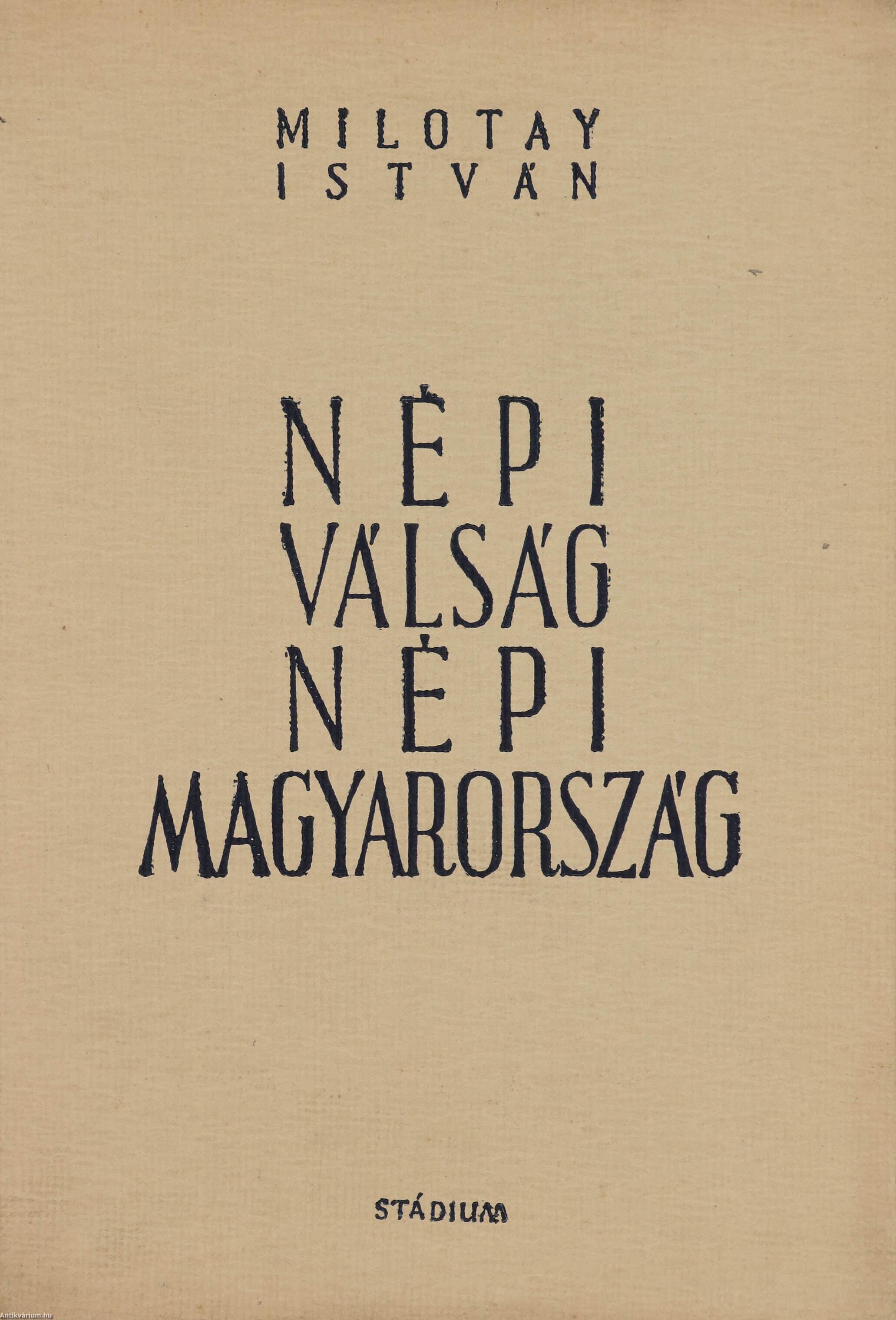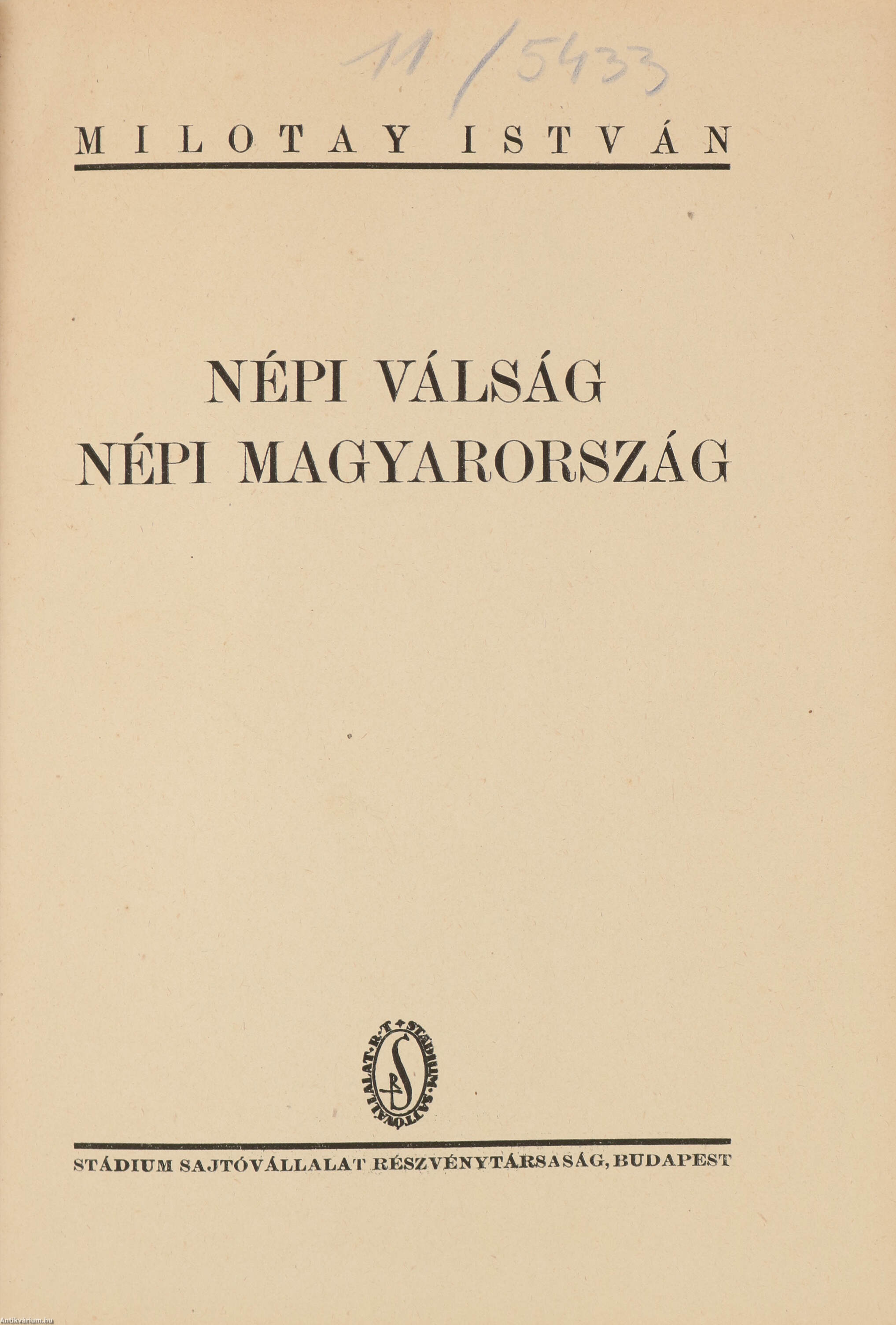 Első kiadás. Népi válság, népi Magyarország. Írta: Milotay István.