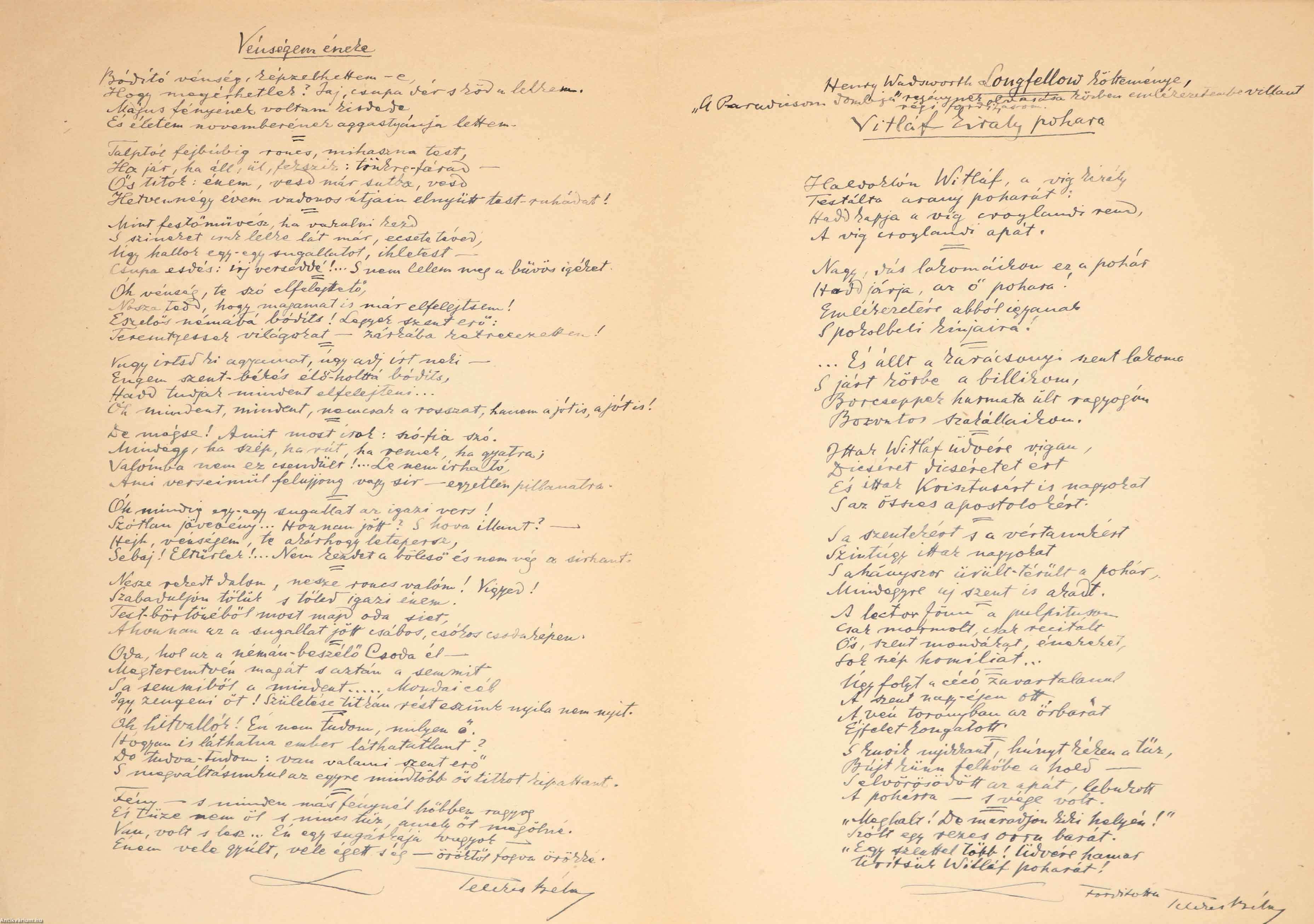 Telekes Béla autográf levele, melyet kiegészített két versével.