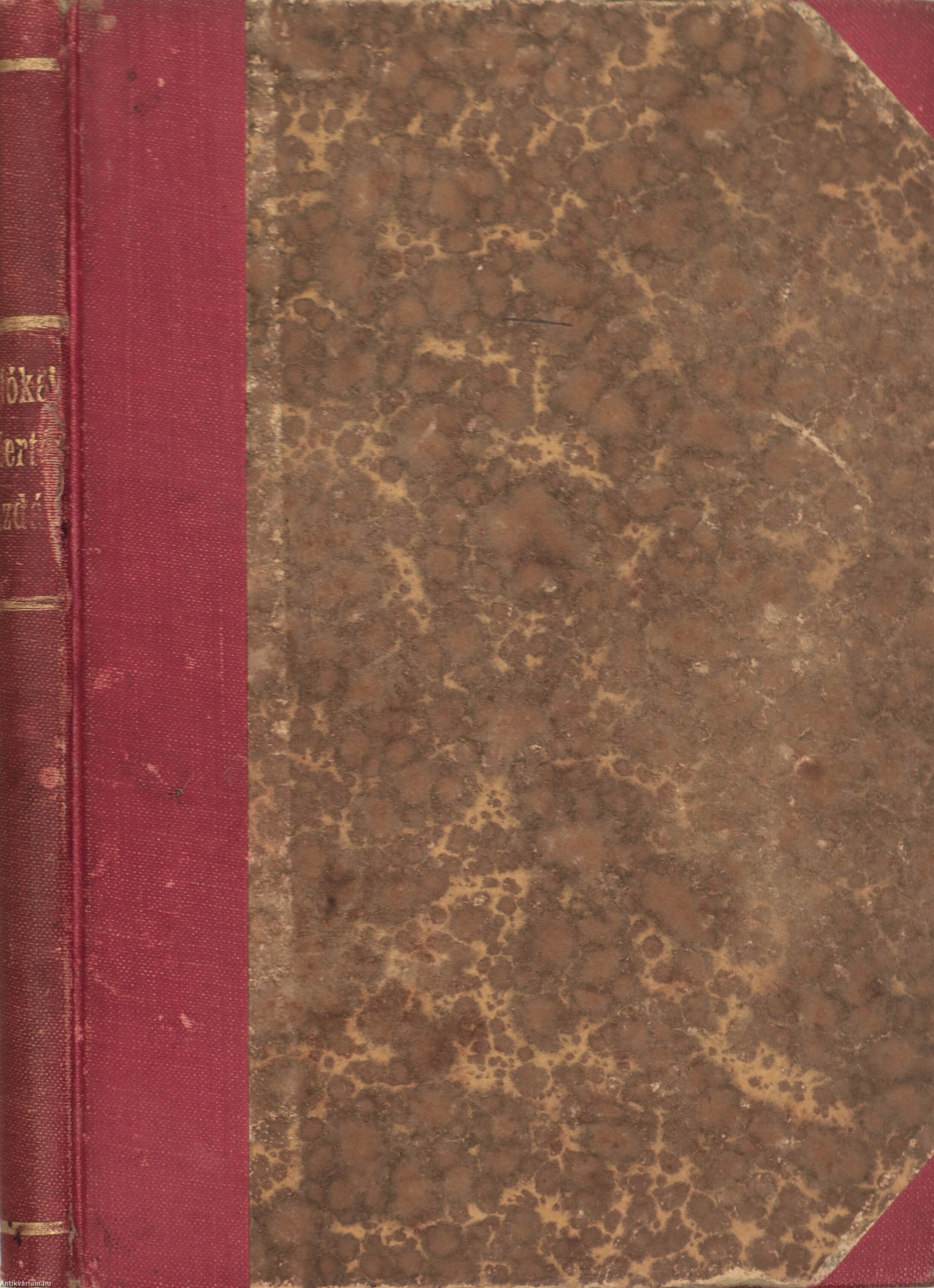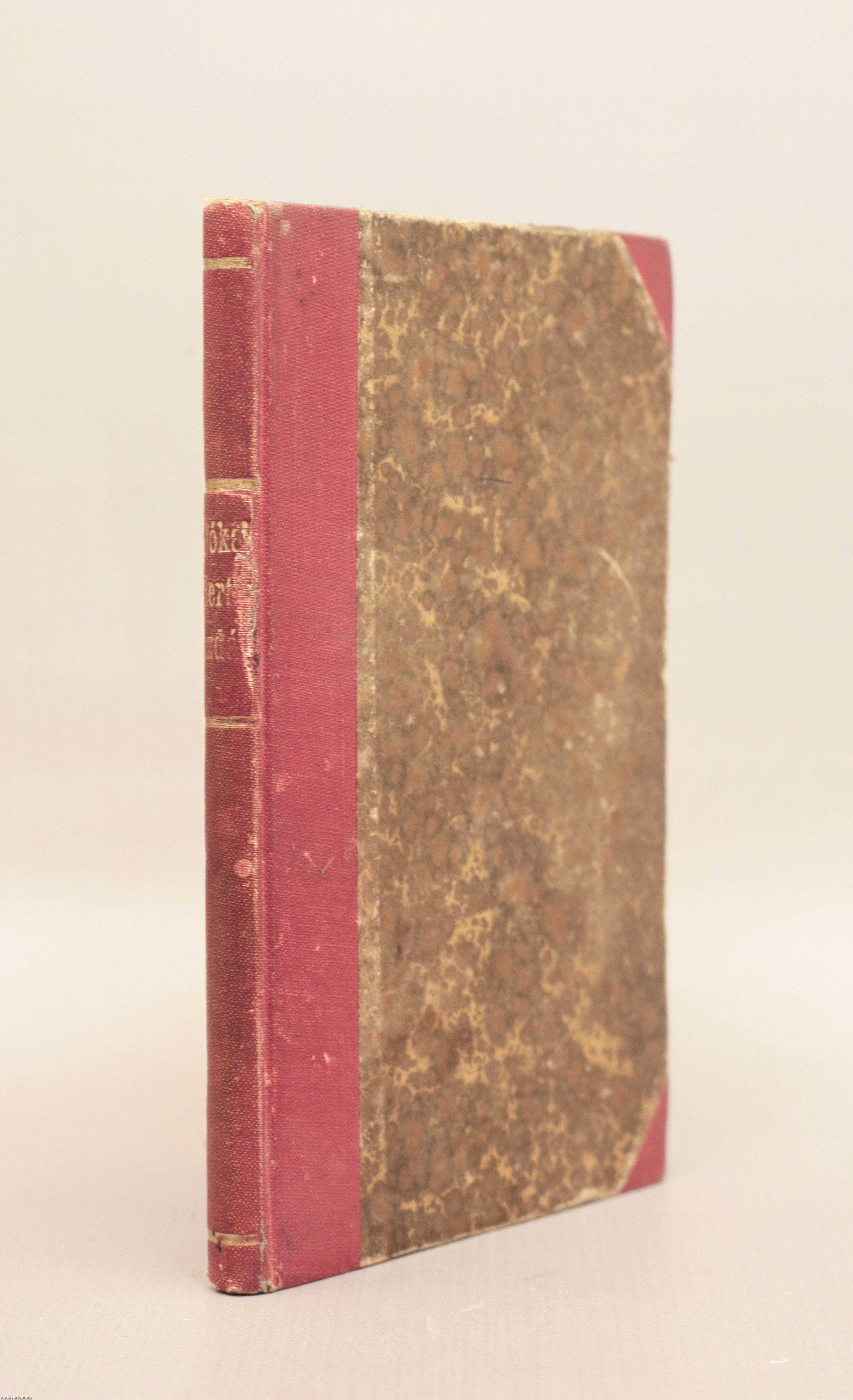 Korabeli félvászon kötésben lévő példány feliratozatlan, mintás címfedéllel és hátlappal, aranyozott feliratozású, sérült könyvgerinccel, mintázott lapélekkel, hiánytalan állapotban.