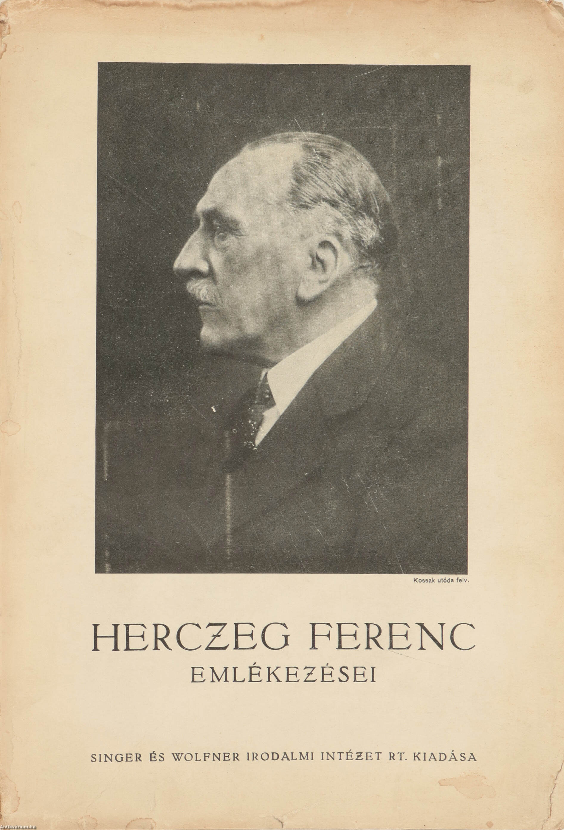 Szerző által aláírt, Klug Péter könyvtárából származó példány.Első kiadás.Herczeg Ferenc emlékezései. I. kötet.
