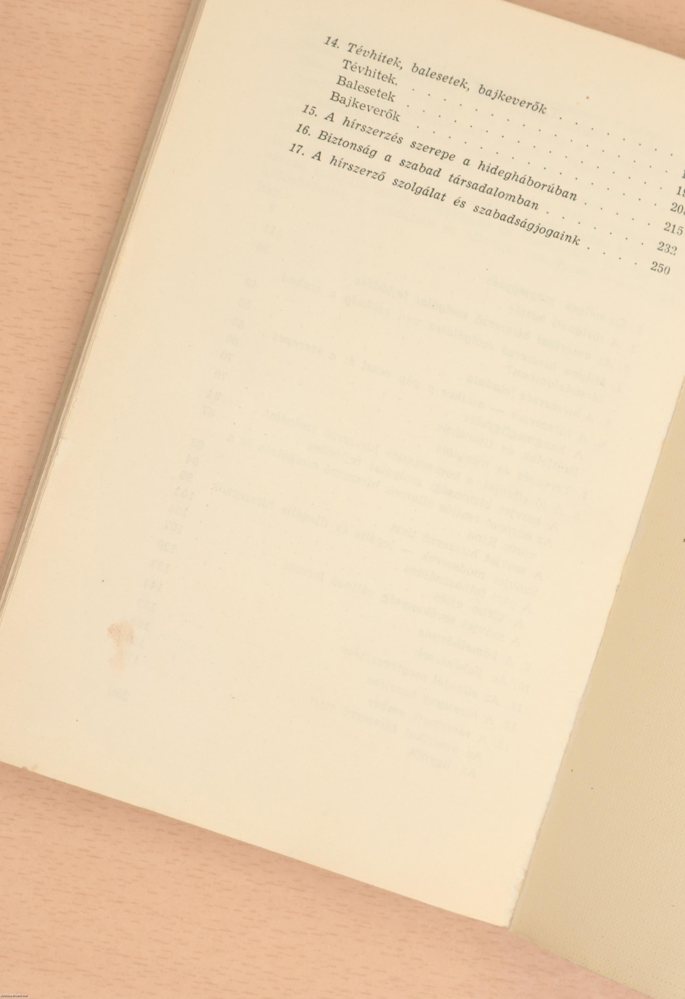 17. A hírszerző szolgálat és szabadságjogaink .... 250