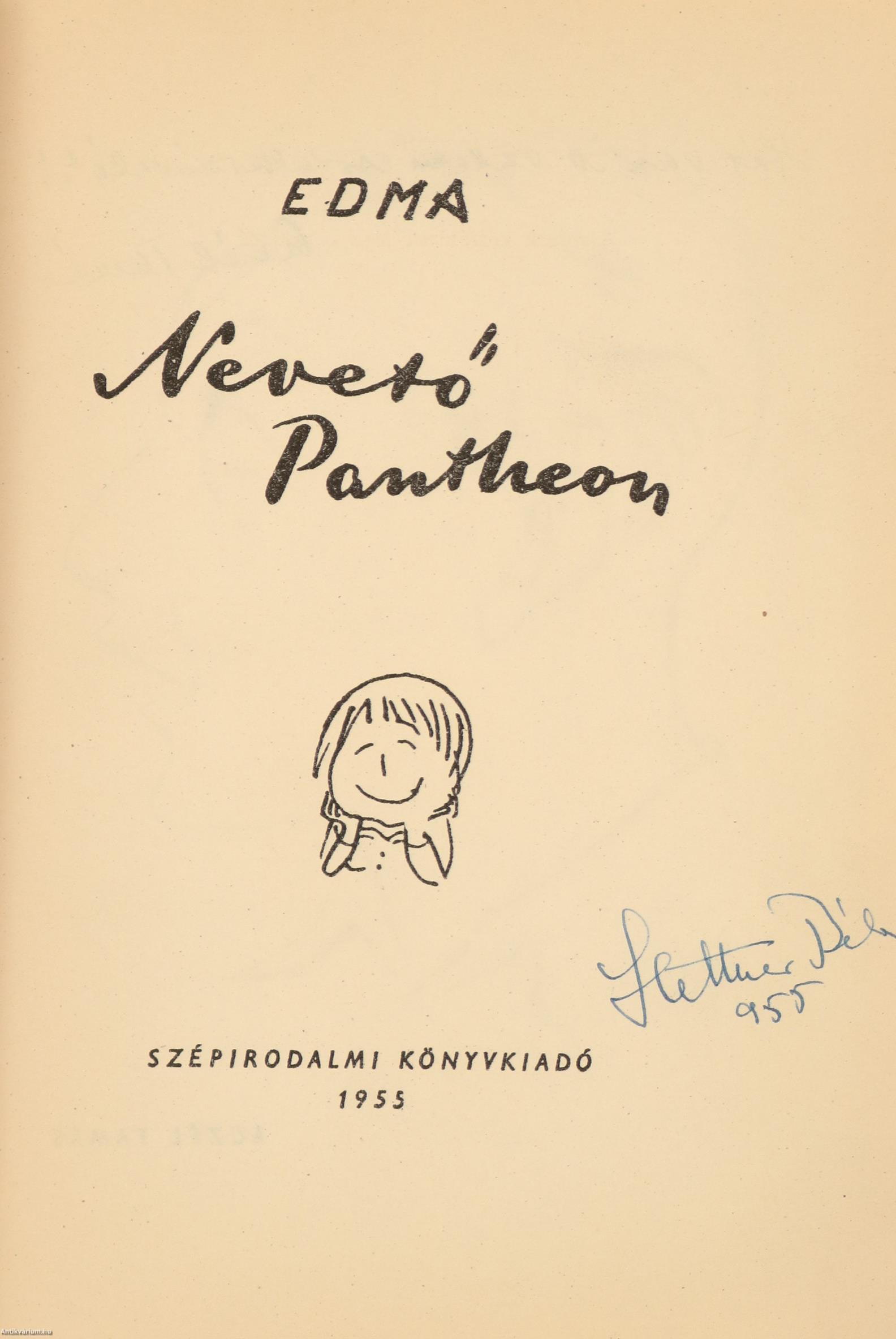 Stettner Béla könyvtárából származó példány. Nevető Pantheon. Karikatúra-könyv. Rajzolta: Edma [Edinger-Balázs Márta].