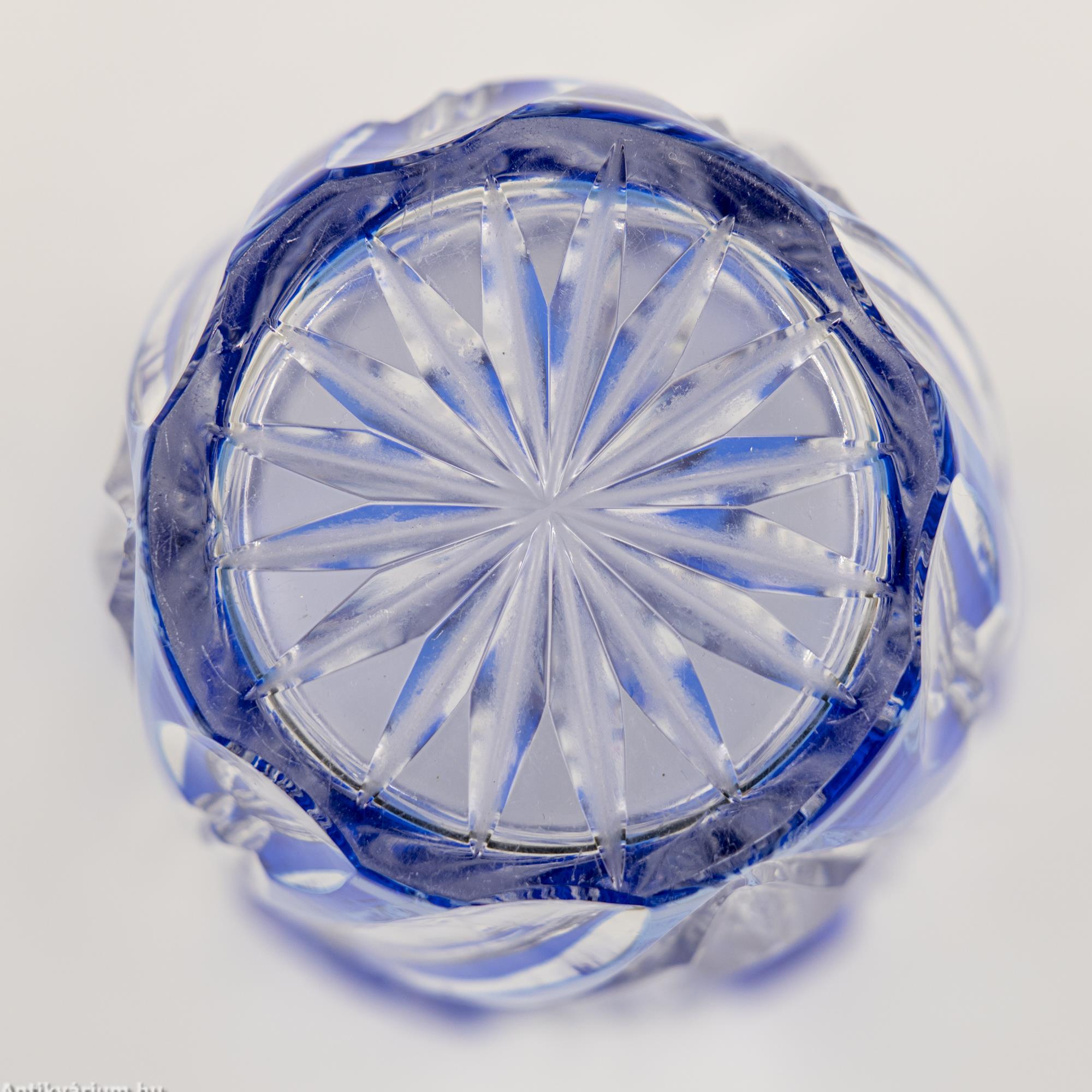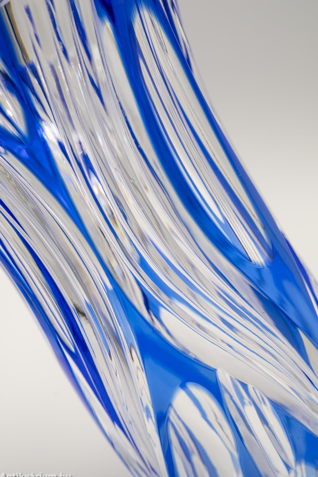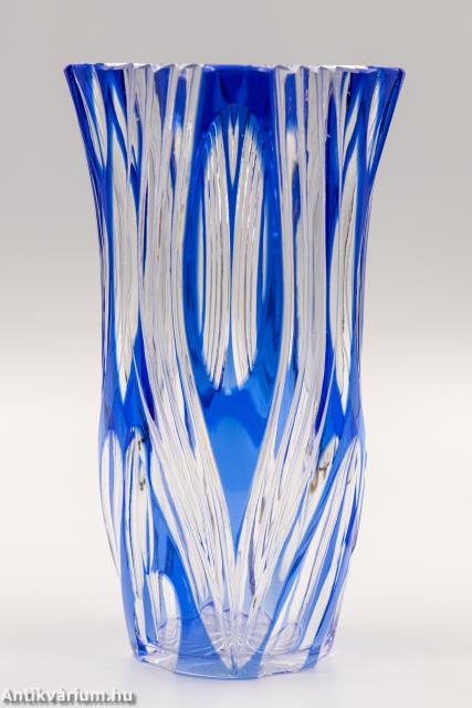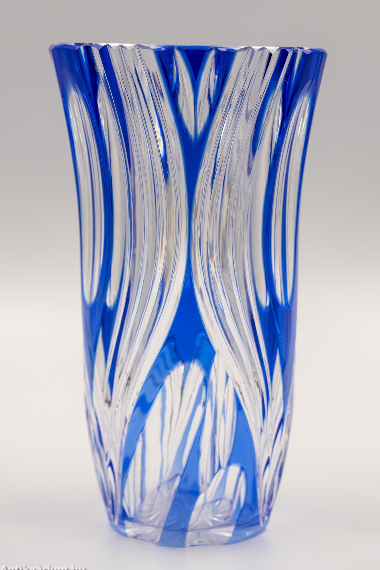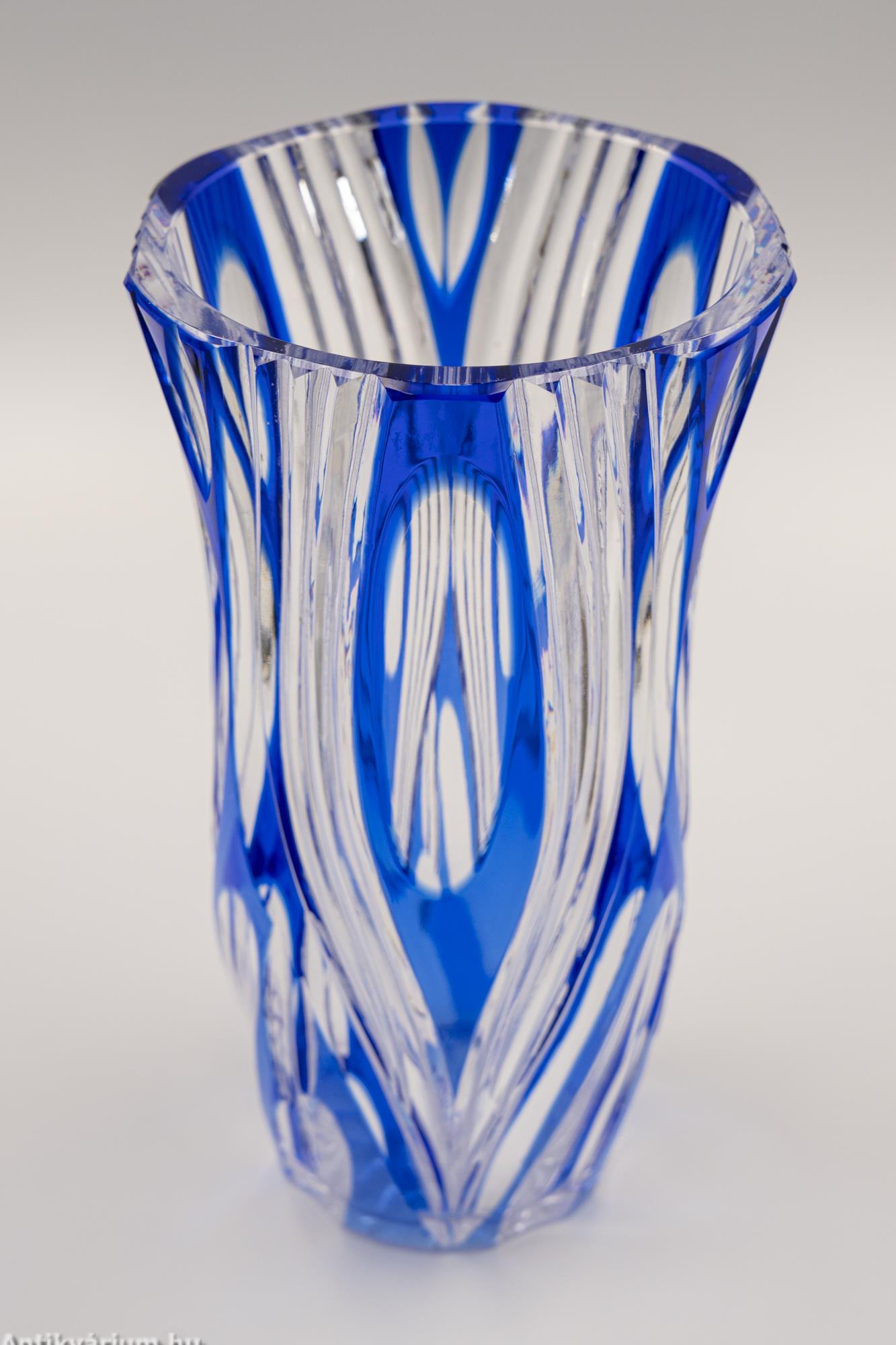 Cseh kék csiszolt überfangos üveg váza 20. század második fele