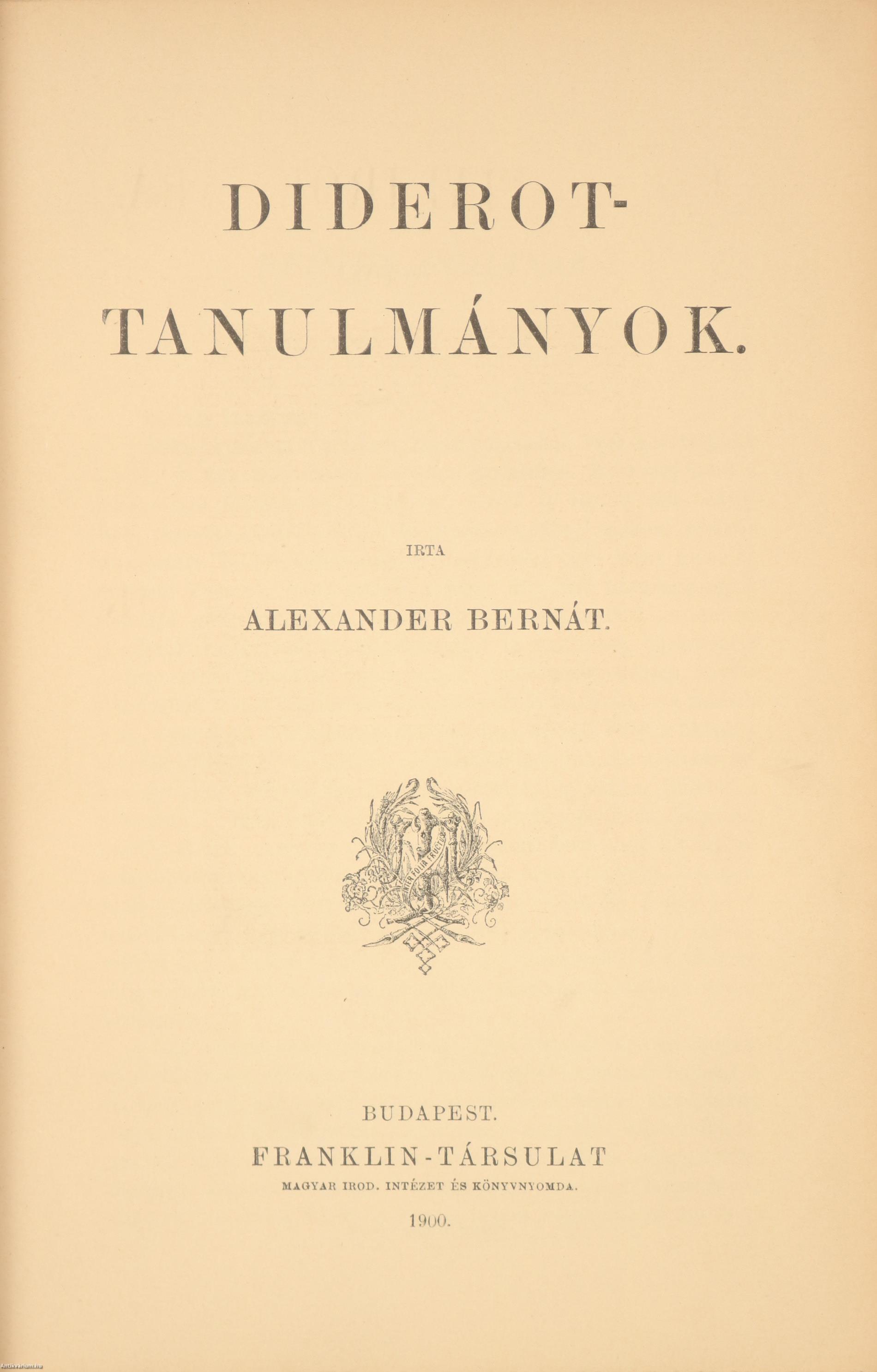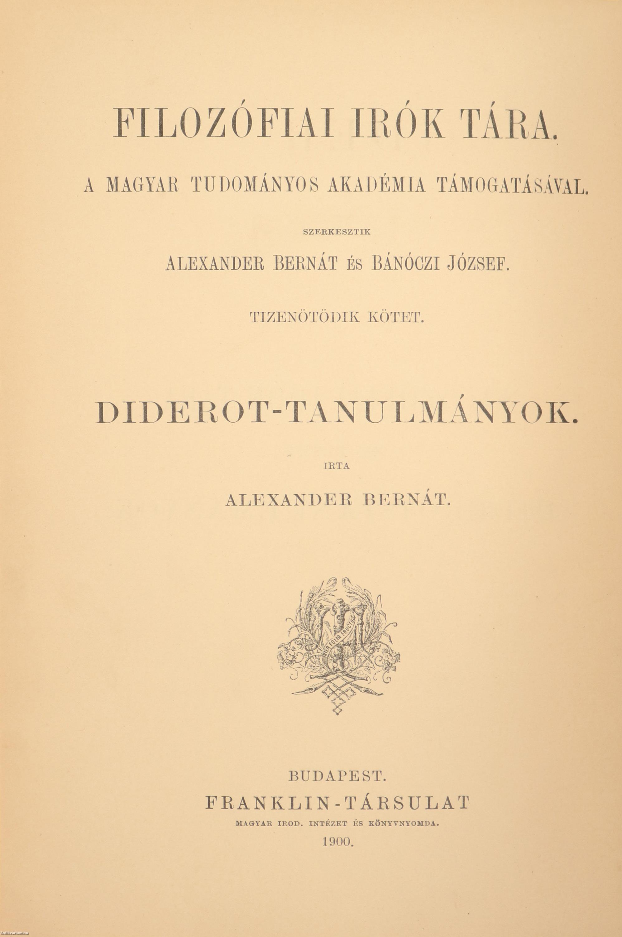 Diderot-tanulmányok. Írta: Alexander Bernát.