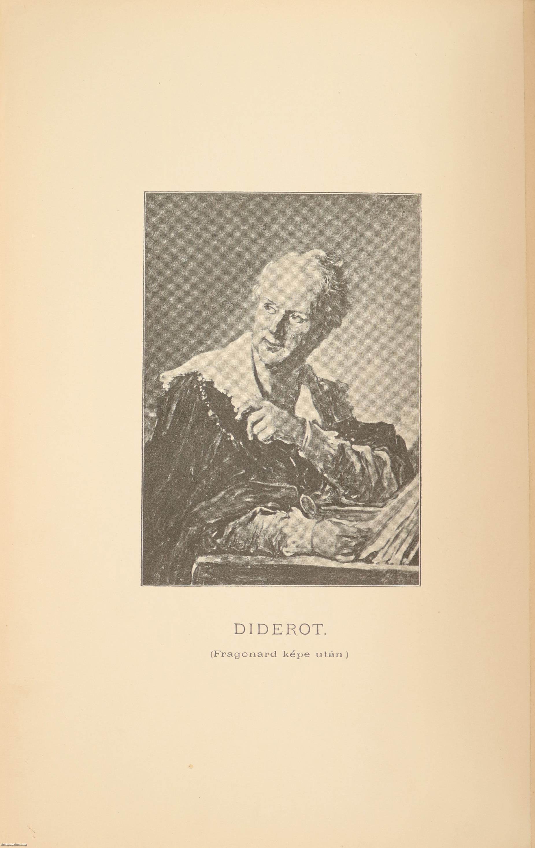 "Száztizenhat éve, hogy Diderot meghalt, nem is maradt utána mű, melyben egész ereje megnyilatkozott volna, irodalmi munkássága ezer felé szóródott, széjjel hullt; mégis alakja csodálatosan eleven maradt a mai napig. Nem az úgynevezett klasszikusok közül való, kik remek mintákat alkotnak; de valami rendkivül vonzó van benne, a mi megóvja frisseségét: Diderot érdekes. Érdekes, de nem a szónak köznapi értelmében az. Egészen elüt a lángeszű emberek típusától, mintha különálló faj volna, melyből alig van második példány, annyira meglep valójának sajátosságaival. Tele van ellenmondásokkal, melyek néha nyugtalanítanak, néha elidegenítenek tőle, de még többször vonzanak és elbájolnak. A mi korunk embereinek belső nyugtalansága, szakadozottsága mutatkozik néha benne, de a mi epés, kesernyés érzésünk nélkül. Katalin czárnő azt mondotta neki egyszer: Néha úgy látom, mintha száz éves feje volna, néha meg mintha tizenkét éves gyermeké. Minden mesterkedés nélkül mondhatni, hogy sok, sok tekintetben ő az ellenmondások embere. Nem nevezetes-e, hogy ez a lángeszű ember, kinek egyes töredékeit annyira csodáljuk, nem alkotott igazán befejezett művet ? Rameau unokaöcscse, irodalmi szempontból mindenesetre egyik legkiválóbb alkotása, melyet Goethe csodált és németre fordított, nem végződik be, hanem megszakad, disszonáncziával, mint a ketté szakadó húr. Talán nem volt Diderotban kitartás, szorgalom ? Ellenkezőleg, a legtürelmesebb munkások egyike, ki huszonöt évet fordít a nagy encziklopédia szerkesztésére, hangyaszorgalommal gyűjtvén, írván, javítván tömérdek czikkeit, és hallatlan akadályok leküzdése után befejezéshez juttatva a monumentális alkotást."