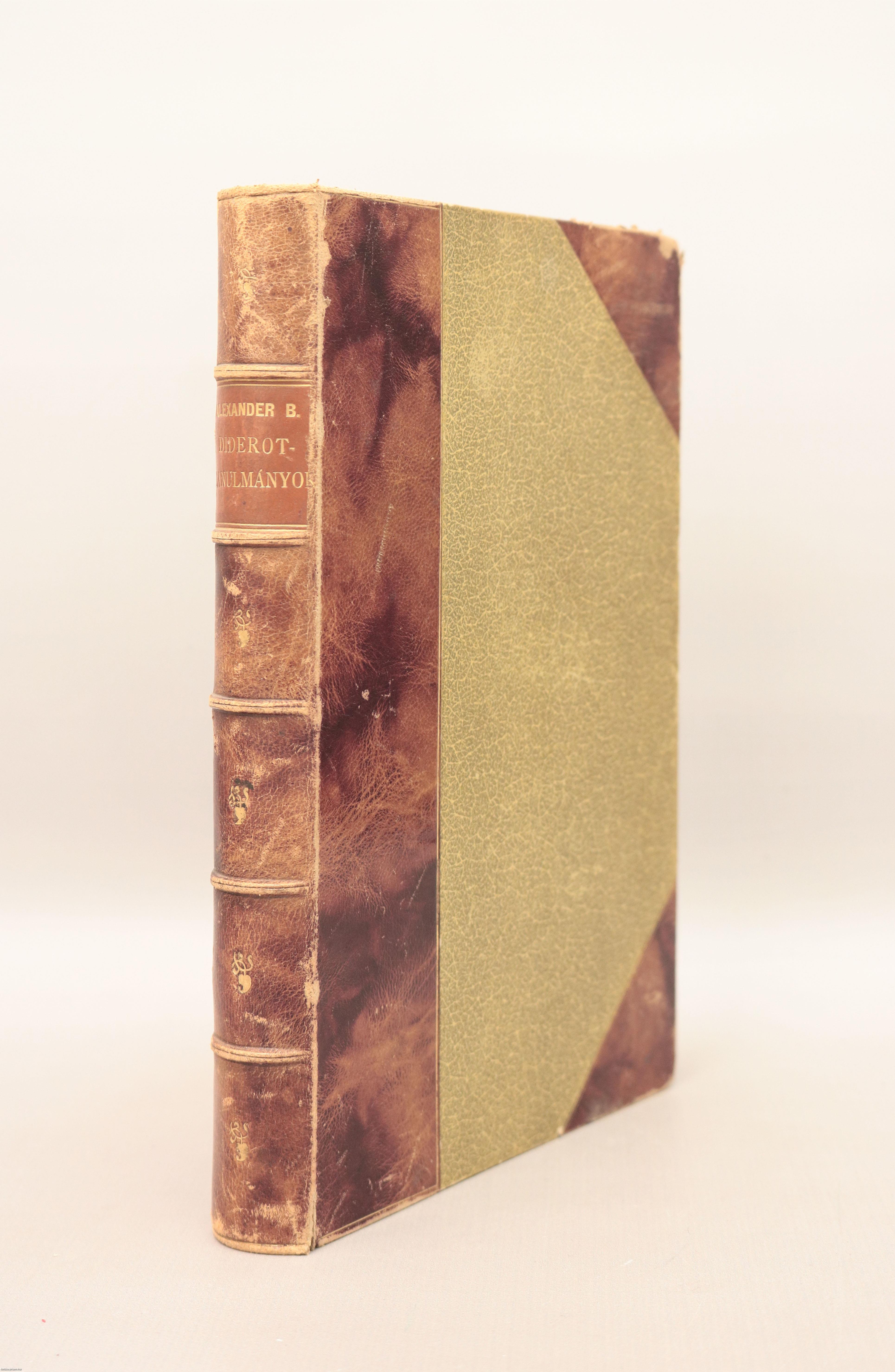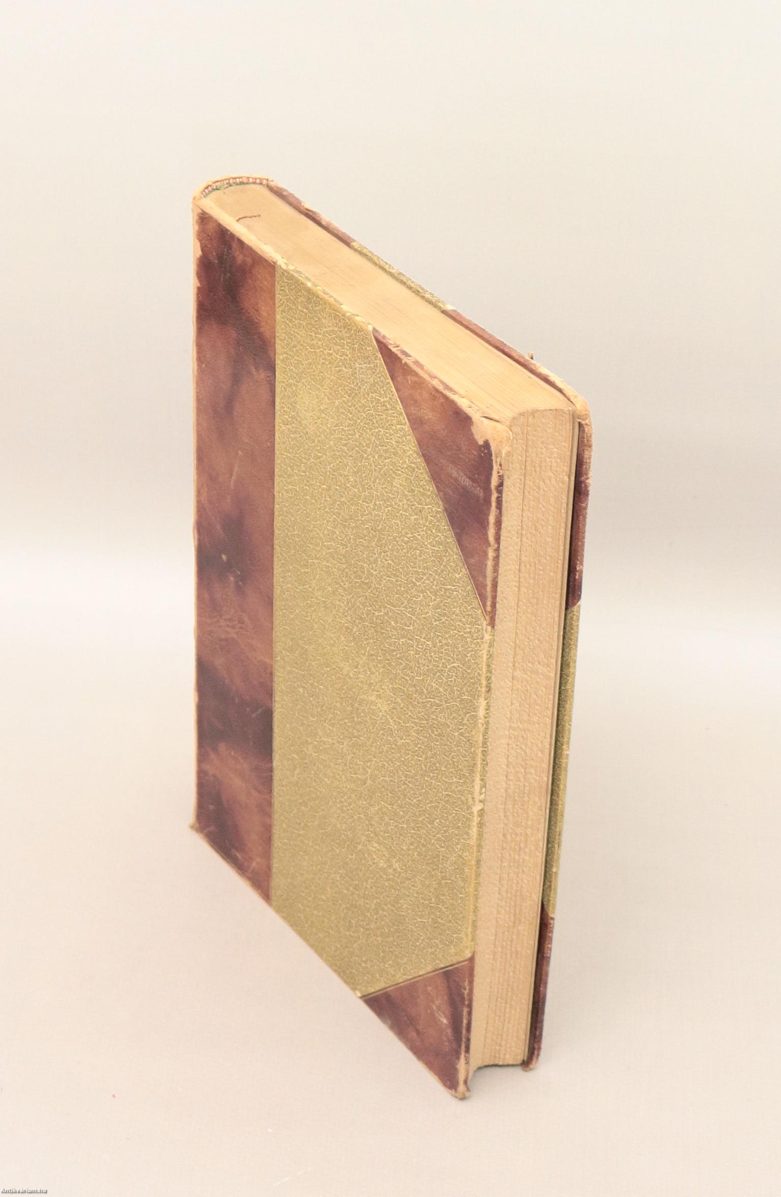 Kiadói, enyhén kopott félbőr kötésben lévő példány, feliratozatlan aranyozással díszített címfedéllel és hátlappal, aranyozott feliratozású, öt bordás könyvgerinccel, vaknyomással díszített lapélekkel, kiadói előzéklapokkal, tiszta belívekkel, hiánytalan állapotban.