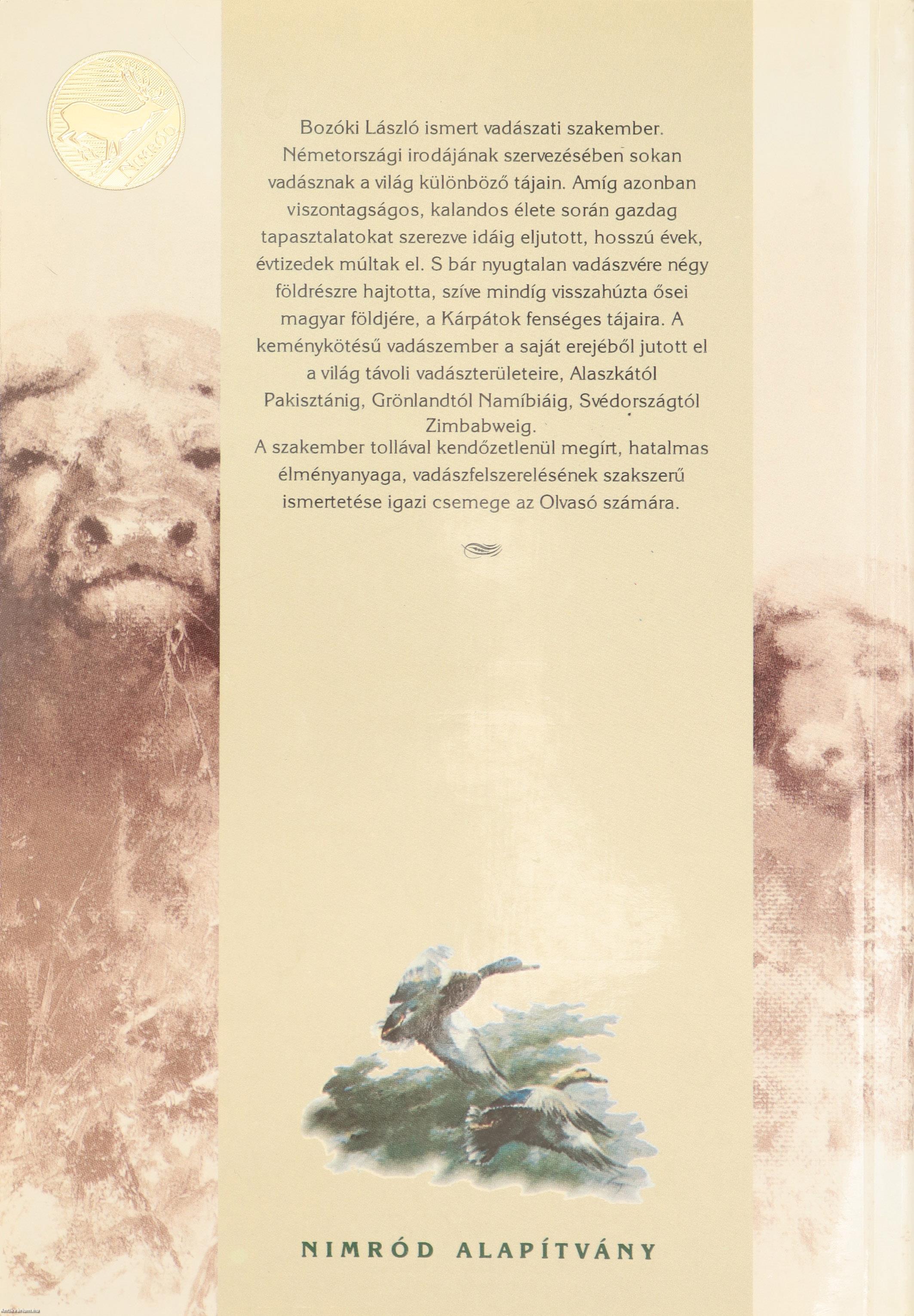 1. Bozóki László: Vándorvadász 1-248. oldal Nimród Alapítványos matricával. A felelős kiadó ex librisével.