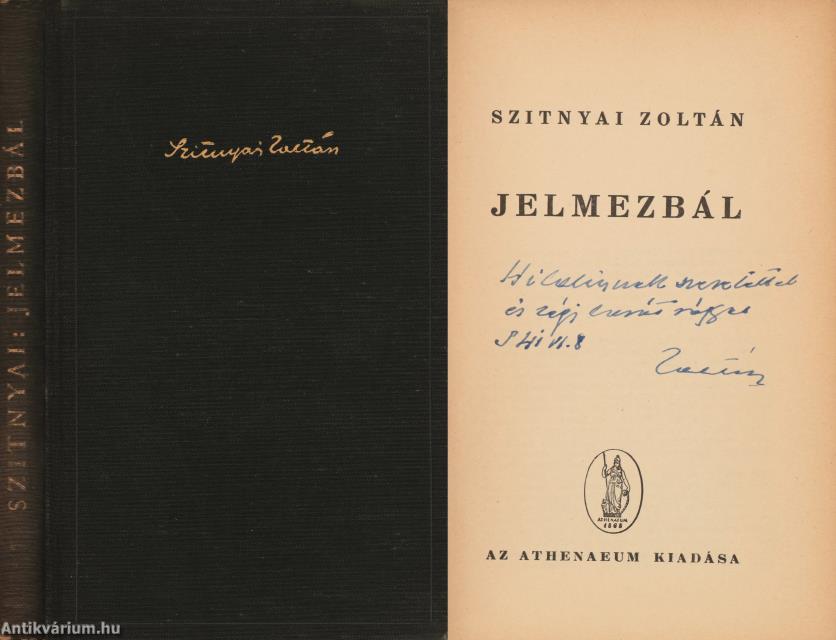 A címlapon a szerző, Szitnyai Zoltán tollal beírt, névre szóló dedikációja olvasható: "H.-nak szeretettel és régi barátsággal Zoltán 941 VI.8"