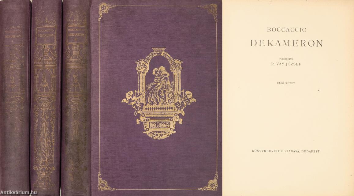 | Kezdődik a Dekameron első napja, melyen a szerző elmondja: miképpen esett, hogy az alább színre lépő személyek egybegyűltek, hogy meséljenek egymásnak, annak utána pedig Pampinea uralkodása alatt ki-ki olyan történetet mond el, amelynek tárgyát tetszése szerint választotta | |