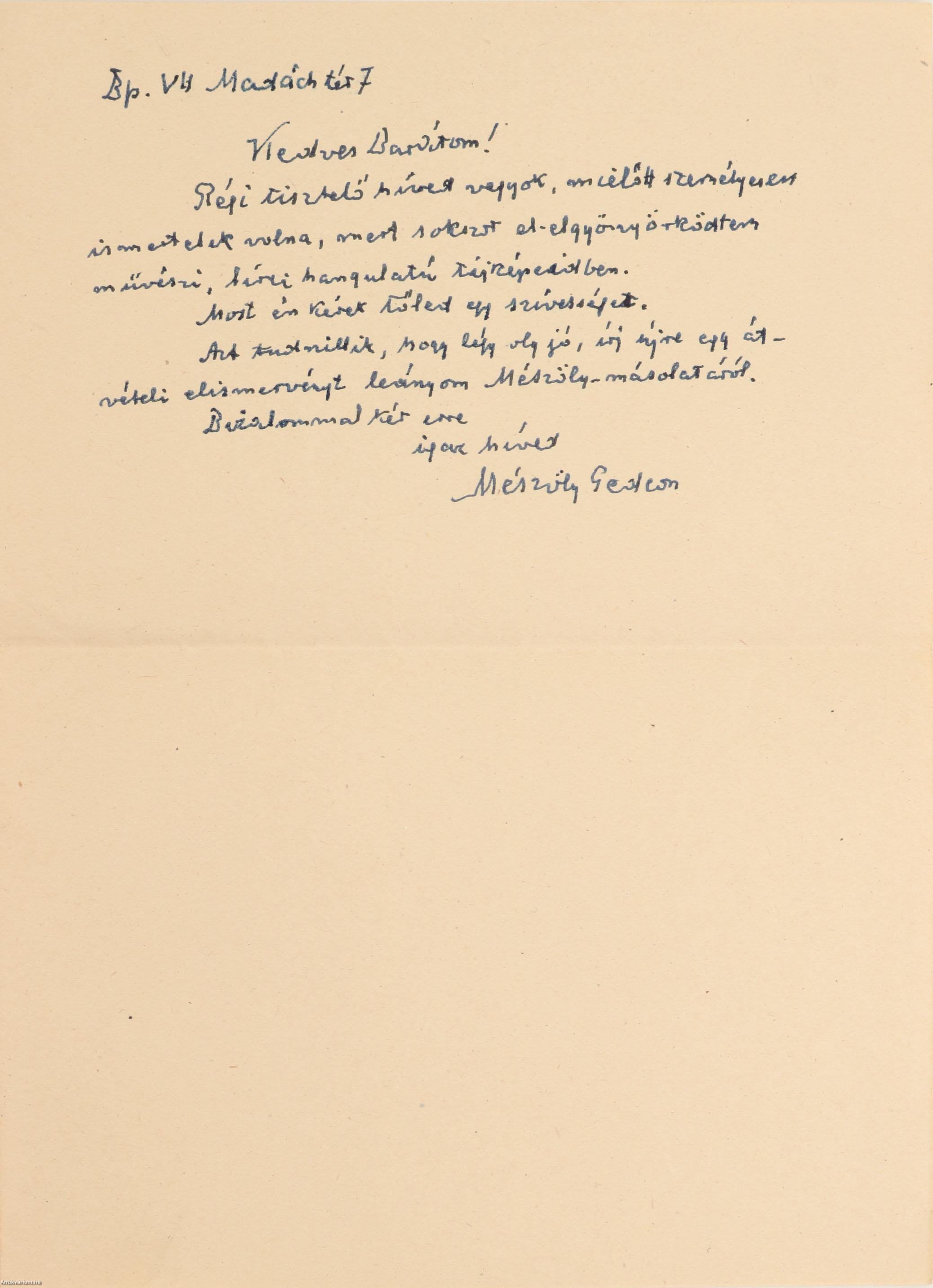 A levél végén Mészöly Gedeon nyelvész, műfordító aláírása látható.