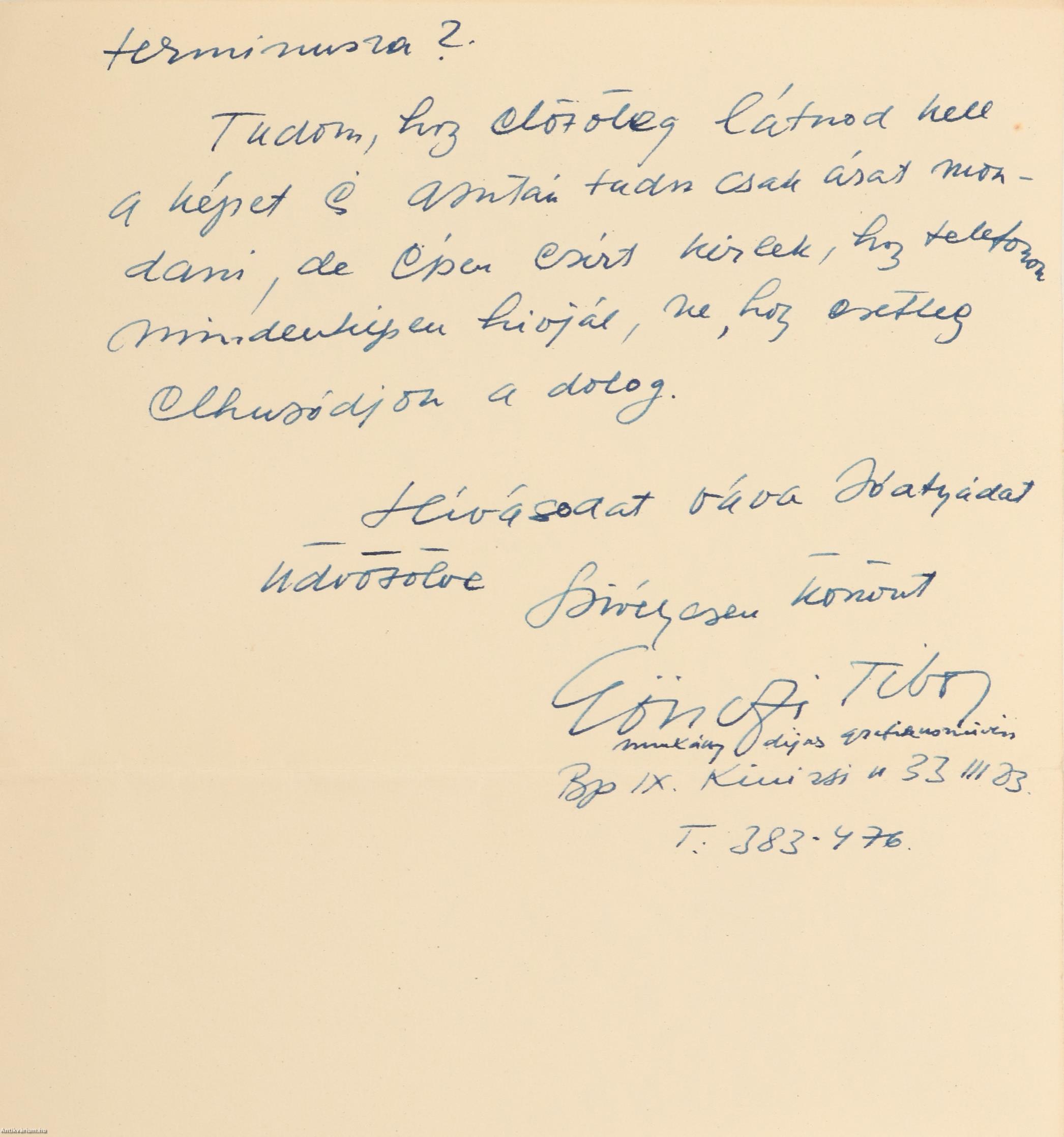 A levél végén Gönczi-Gebhardt Tibor alkalmazott grafikus aláírása látható.