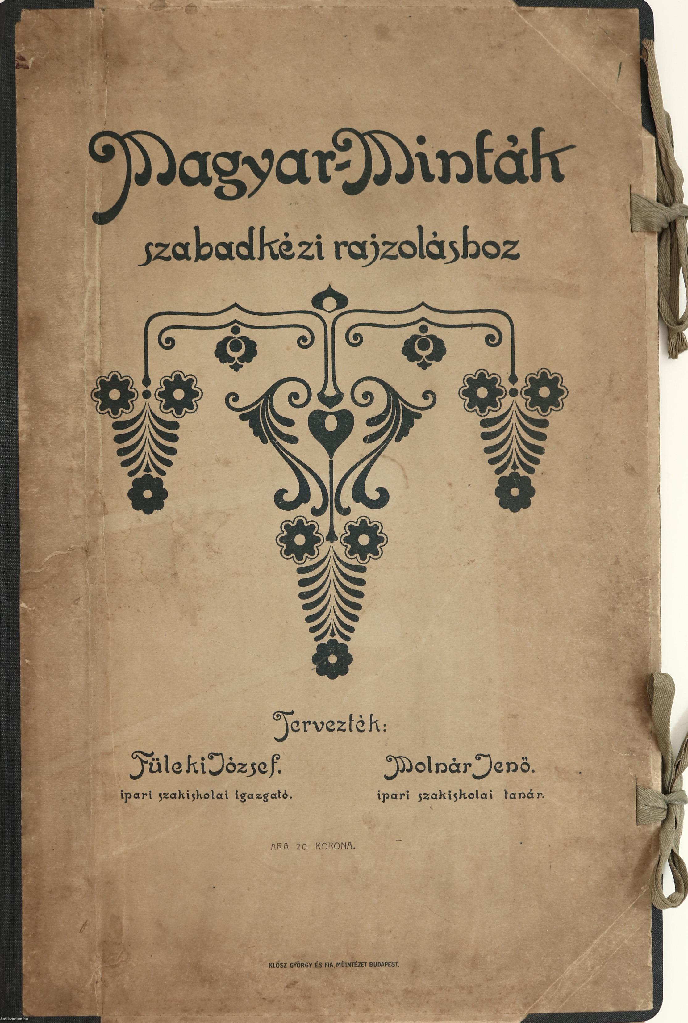 Első kiadás. Magyar-minták szabadkézi rajzoláshoz. Tervezte: Füleki József ipari szakiskolai igazgató és Molnár Jenő ipari szakiskolai tanár.