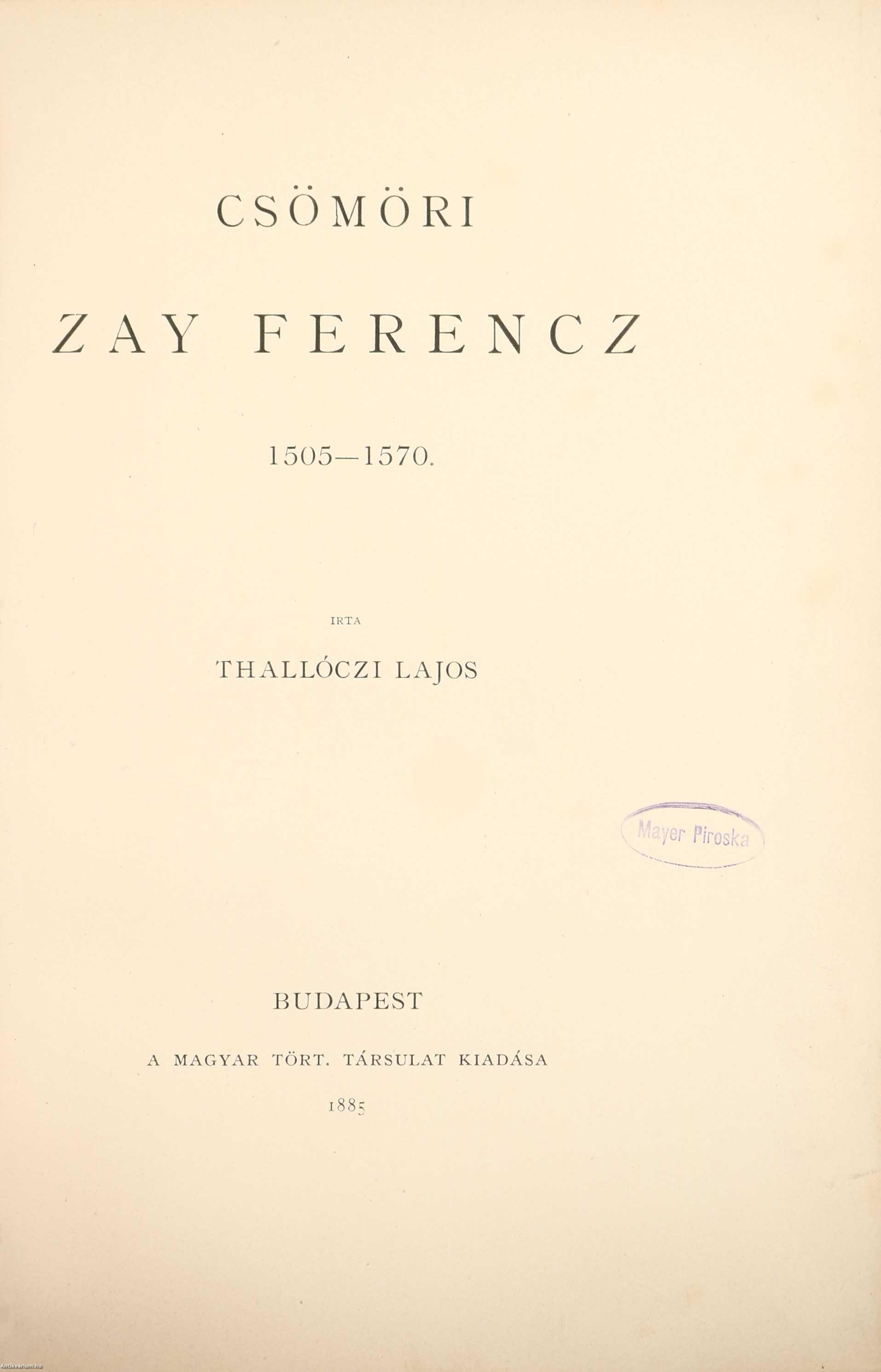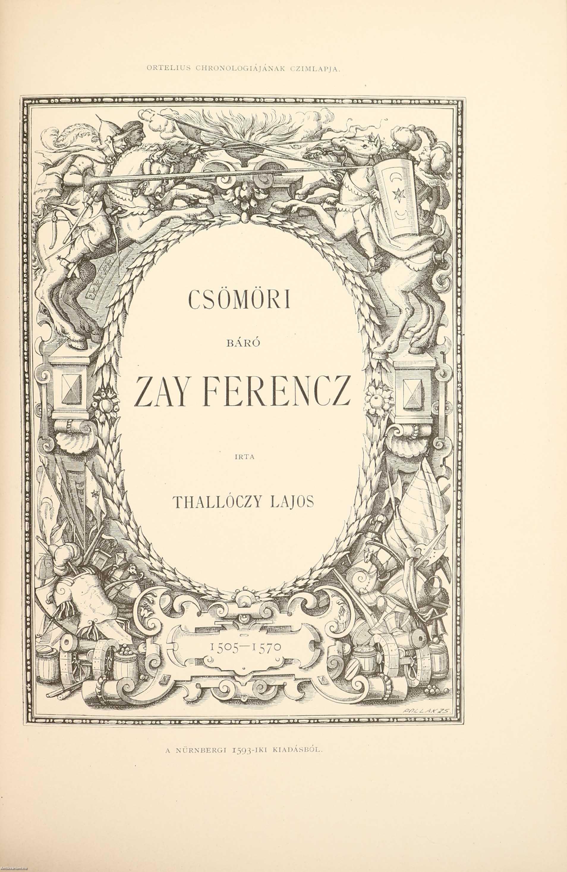 Csömöri Zay Ferencz (kiadási év: 1885, harminczöt a szövegbe nyomott képpel illusztrálva, 12 önálló képpel, melyből egy színes és egy kihajtható. Nyomtatta a Franklin-Társulat könyvnyomdája, Budapest)