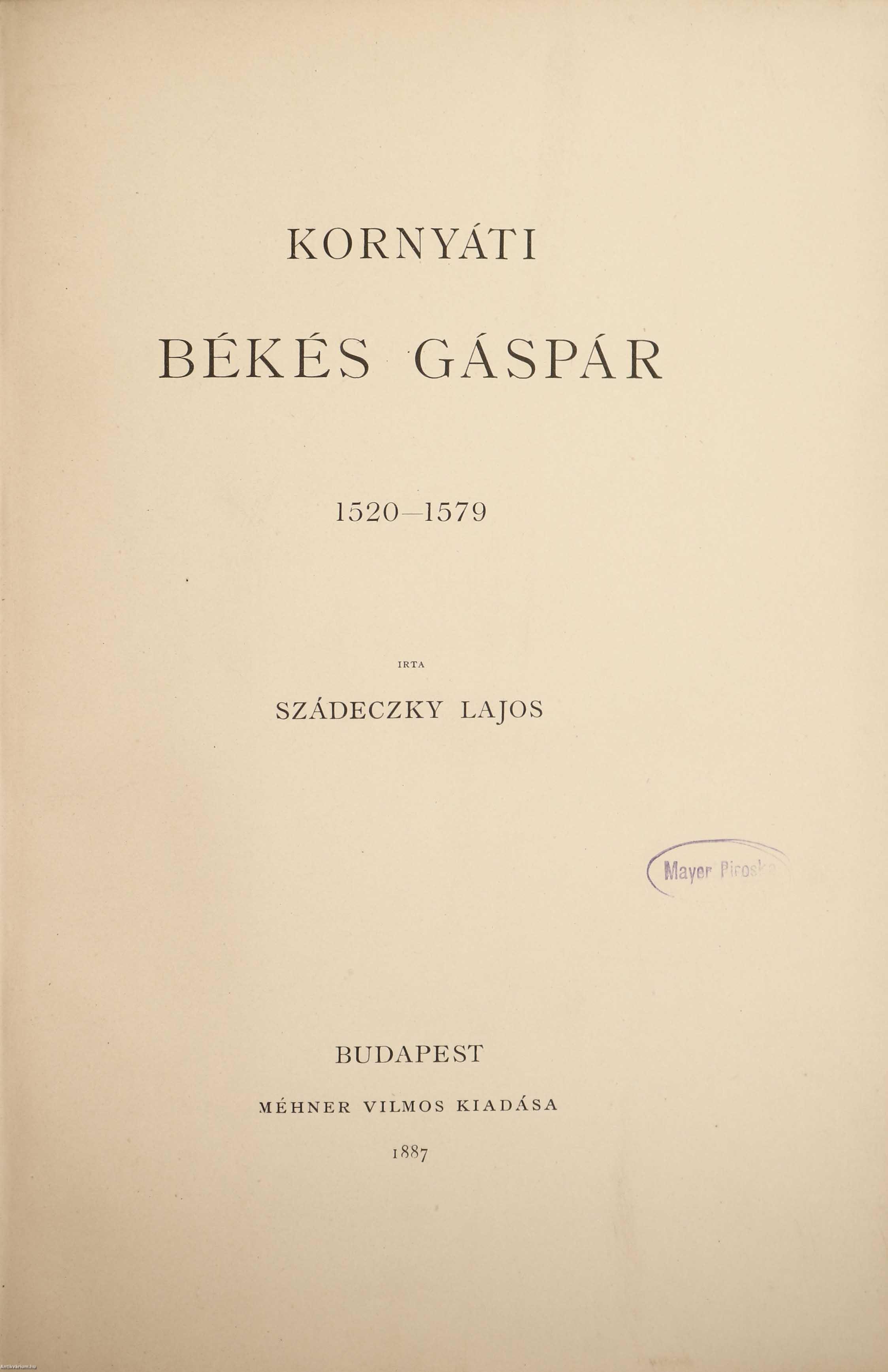 Kornyáti Békés Gáspár (kiadási év: 1887, 28 szövegbe nyomtatott fekete-fehér képpel, 12 önálló képpel, melyből 3 színnyomat, 1 kihajtható fakszimile