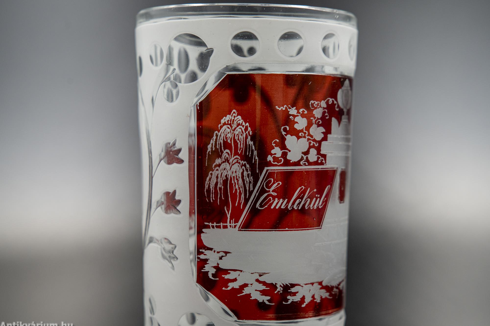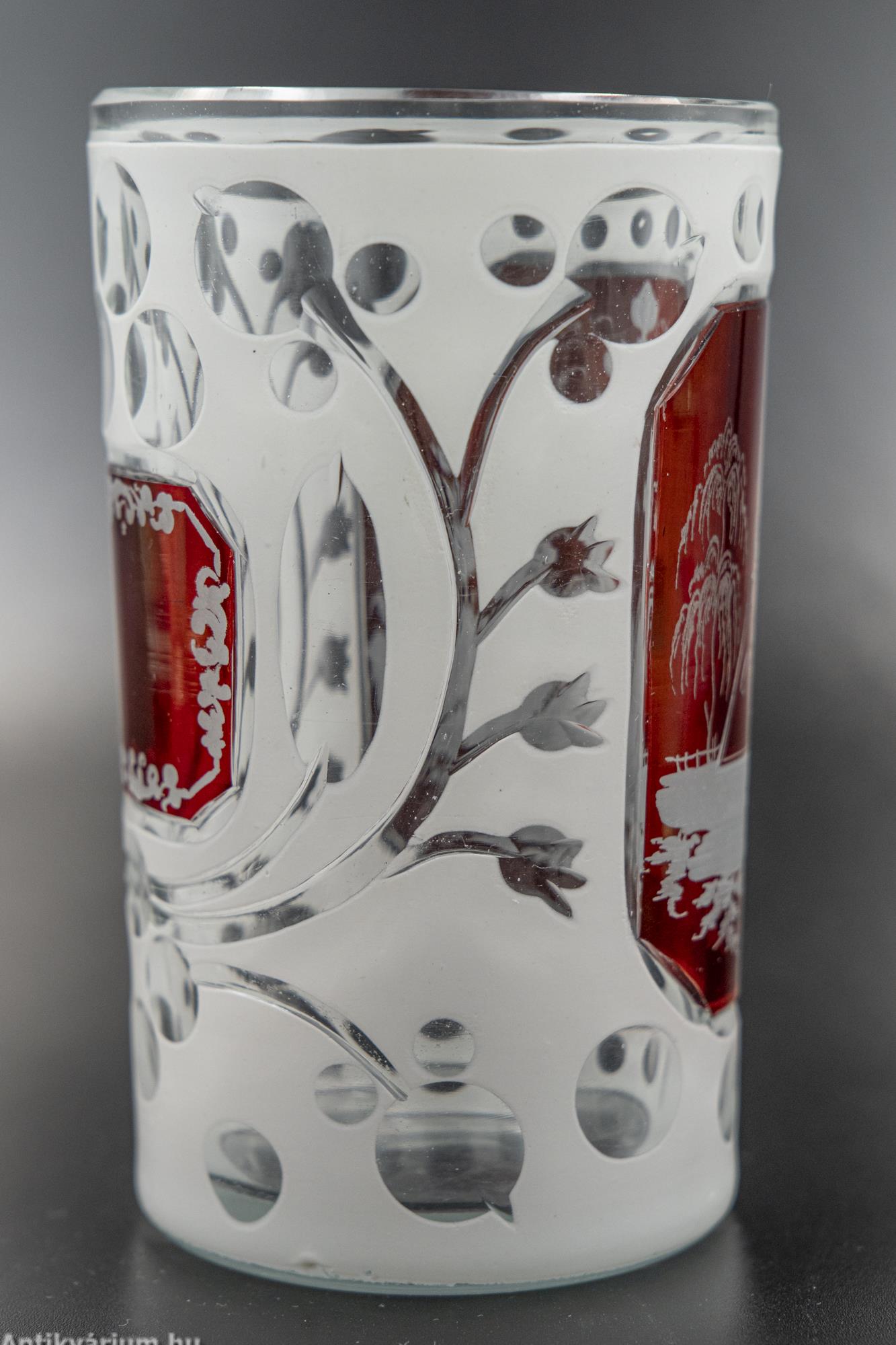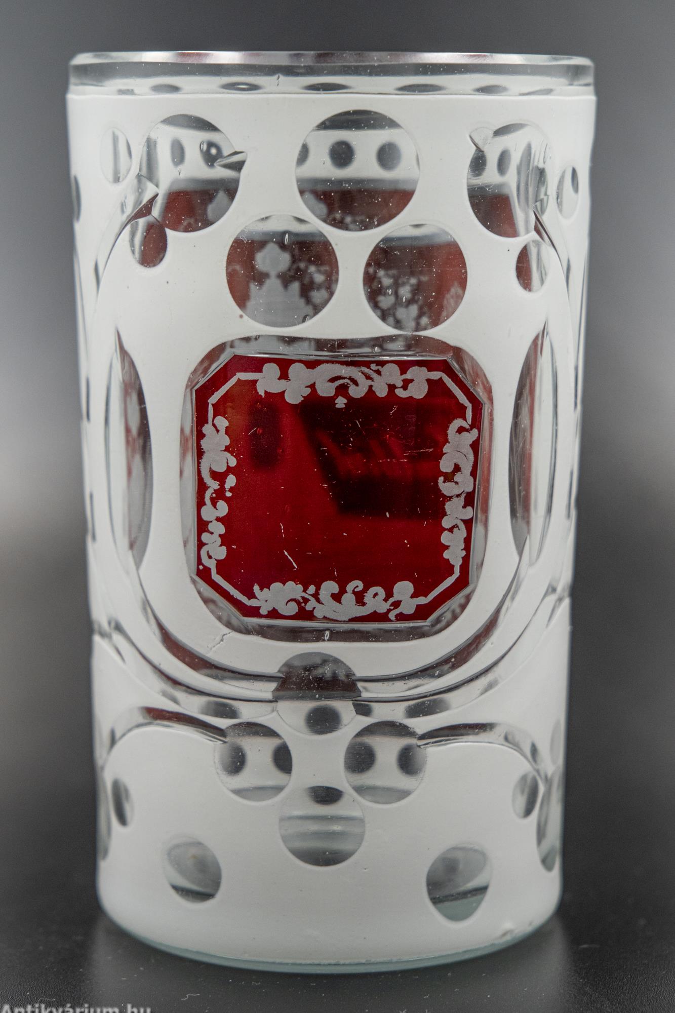 Magyar biedermeier überfangos emlék üveg pohár 19. század közepe