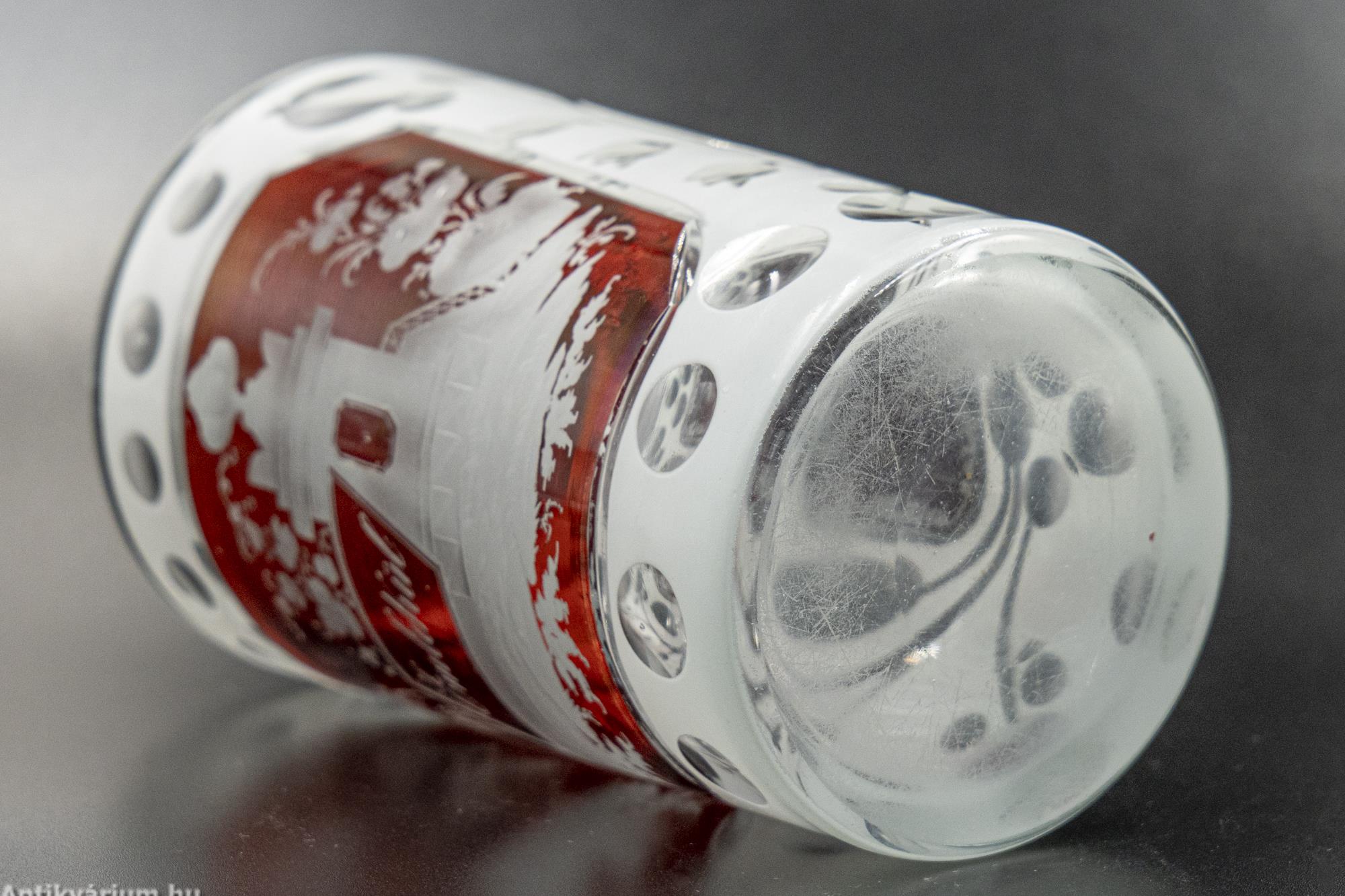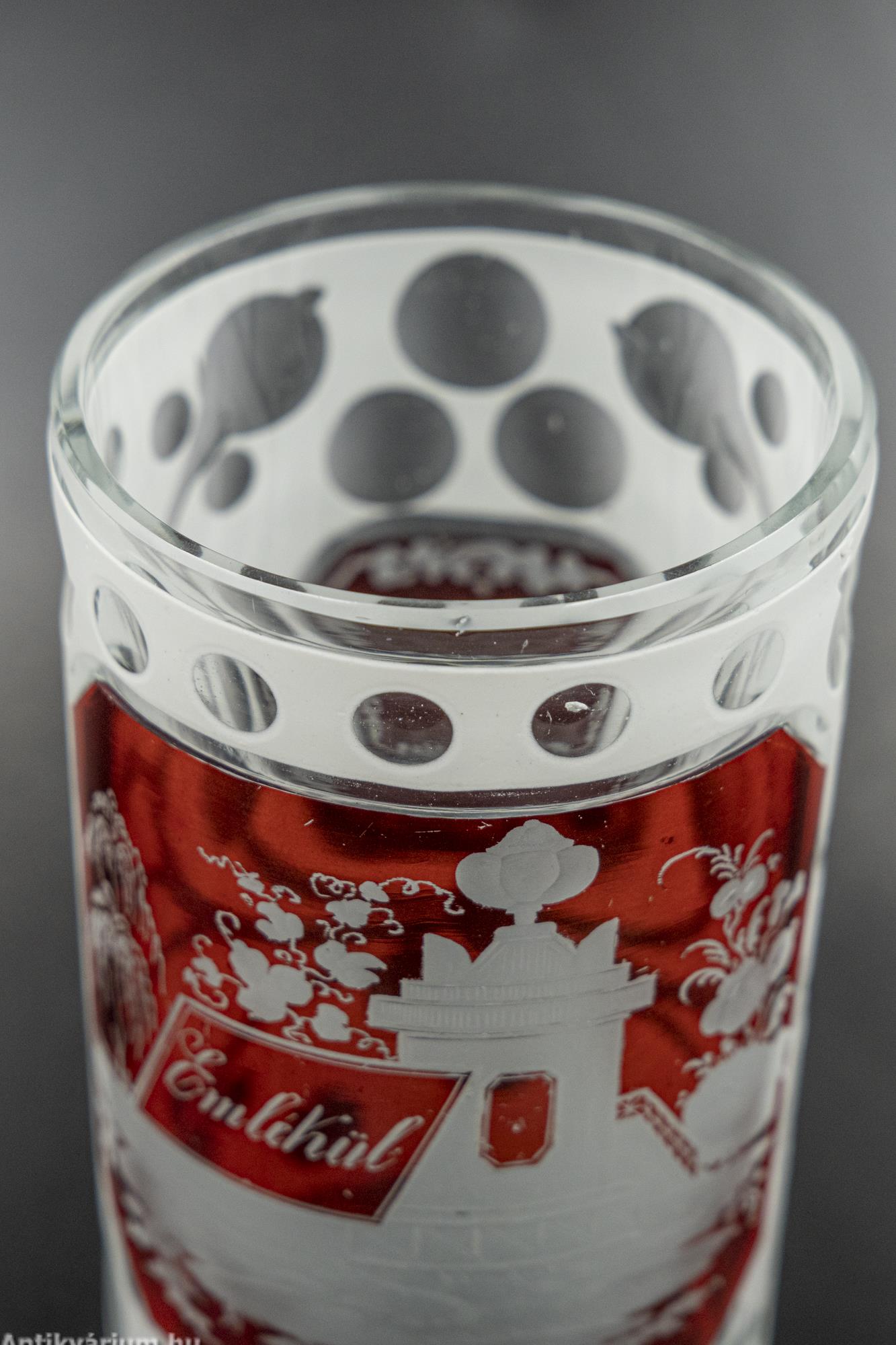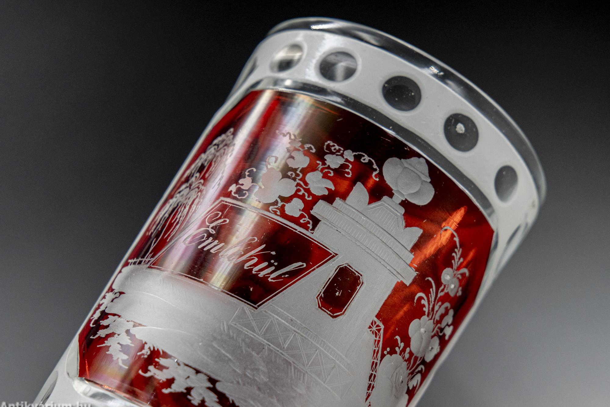 Magyar biedermeier überfangos emlék üveg pohár 19. század közepe