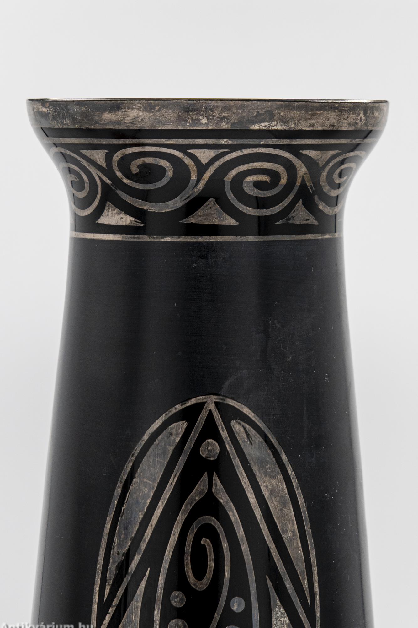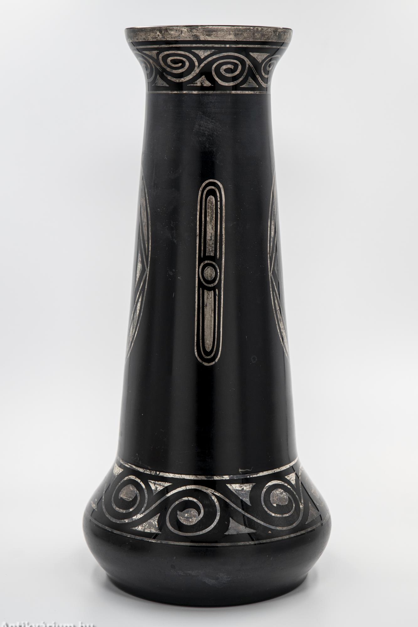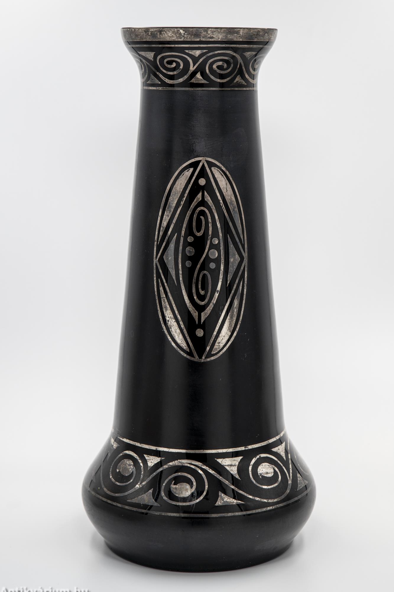 Michel Hermann art deco ezüsttel festett fekete üveg váza 20. század eleje 37 cm
