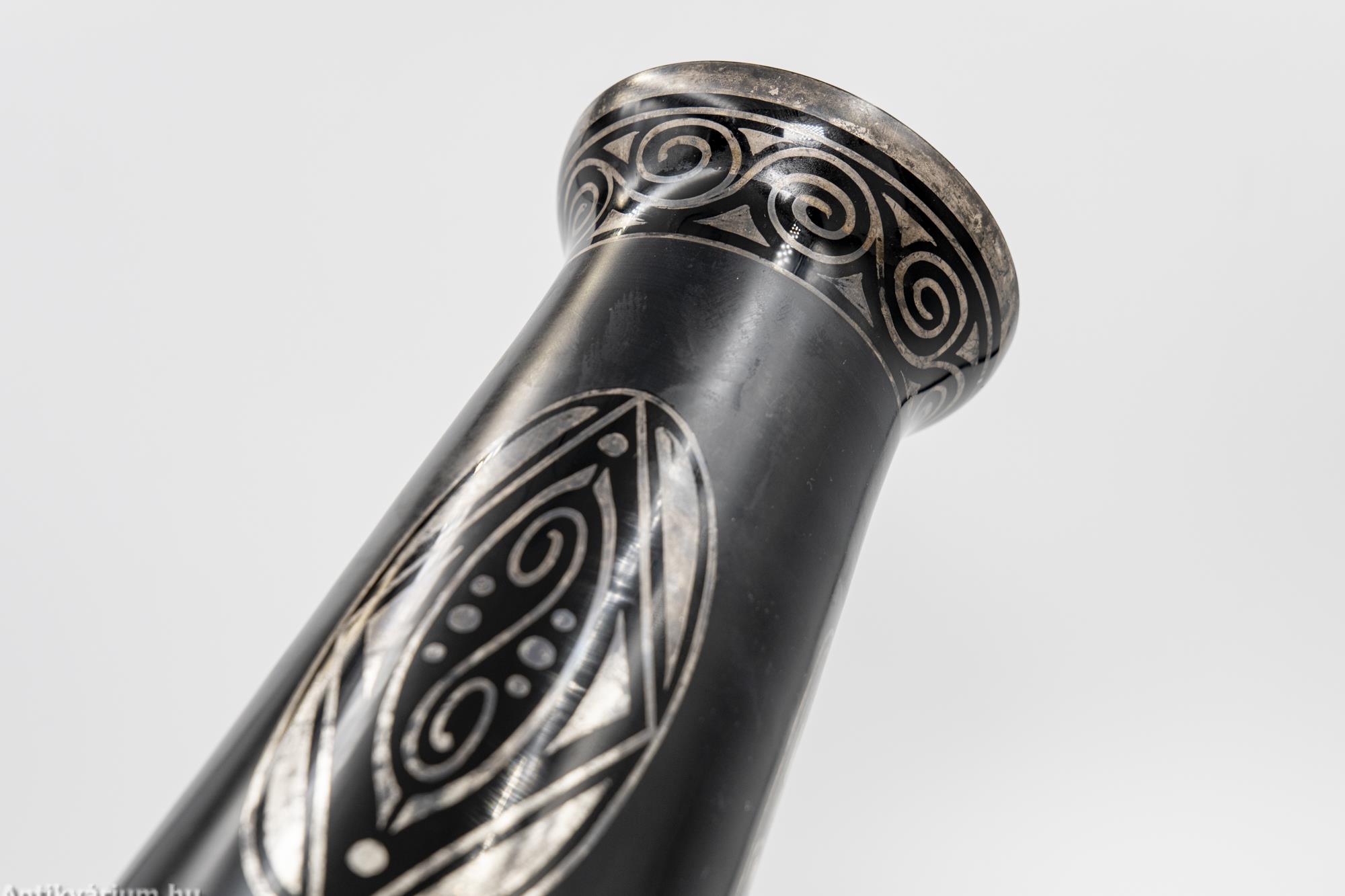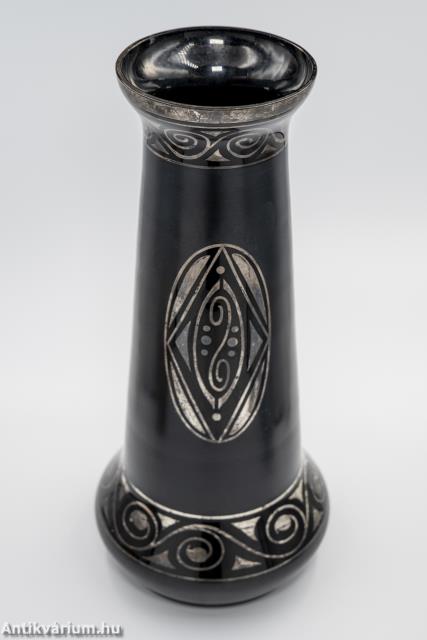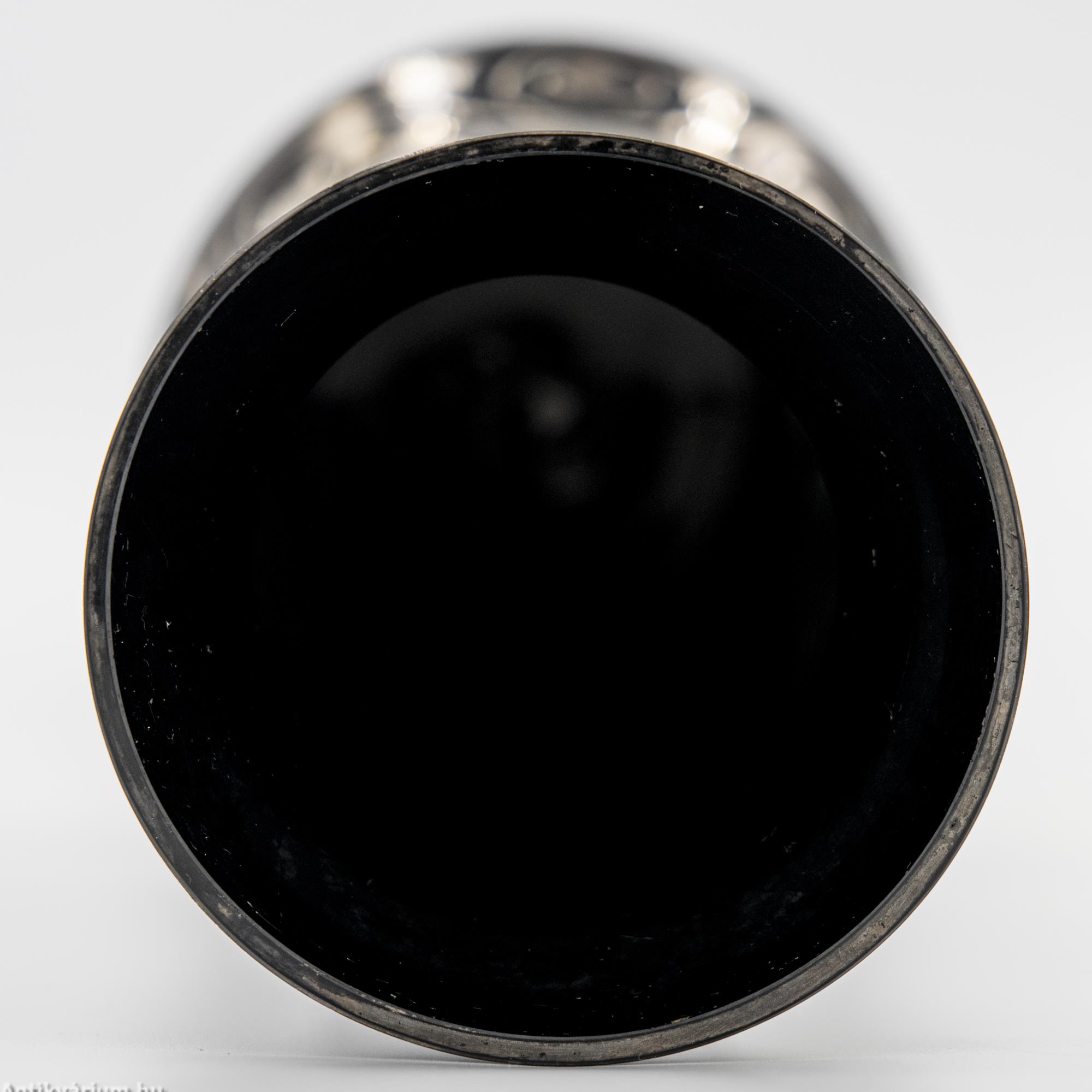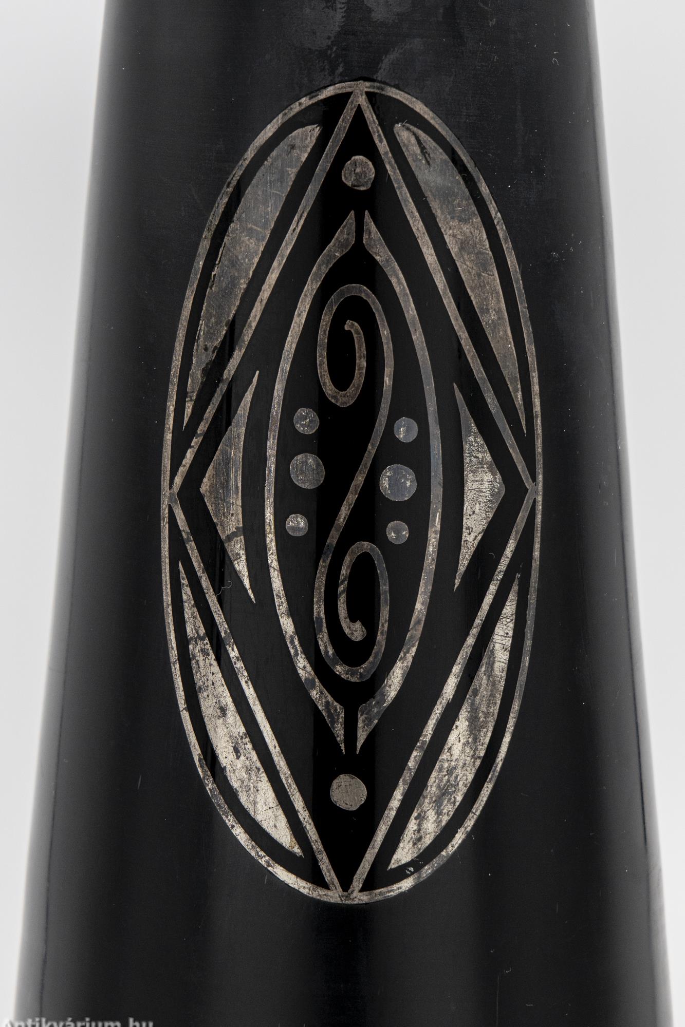 Michel Hermann art deco ezüsttel festett fekete üveg váza 20. század eleje 37 cm