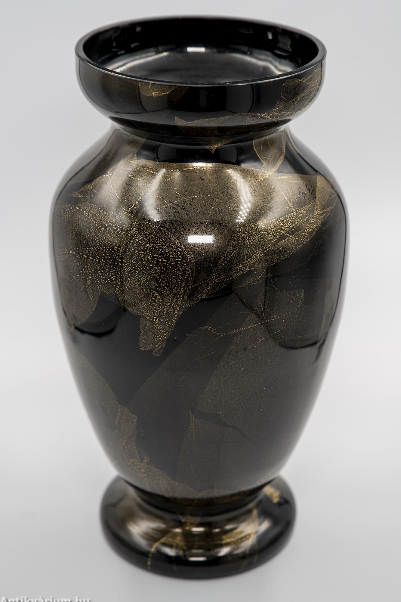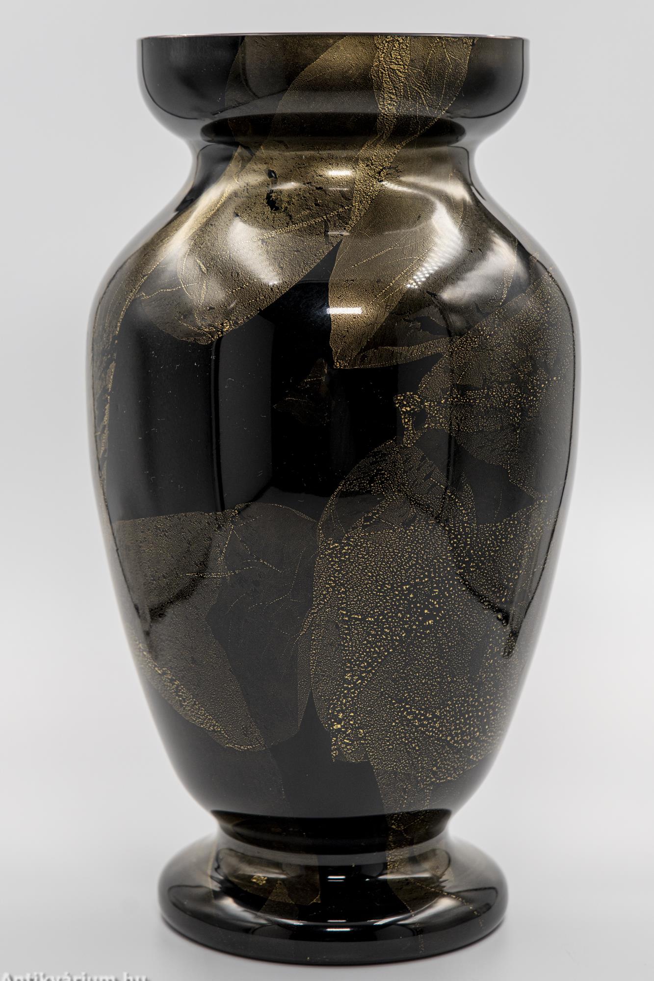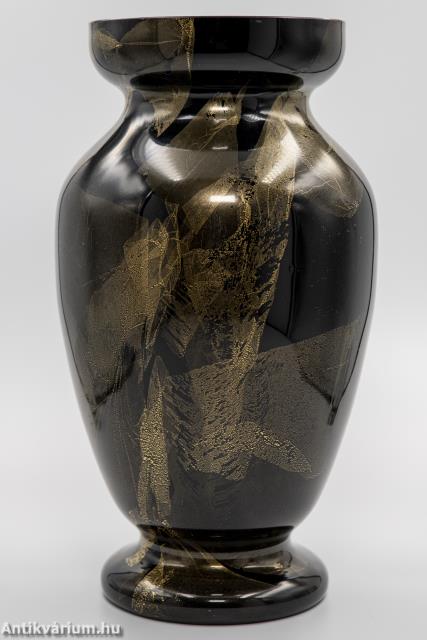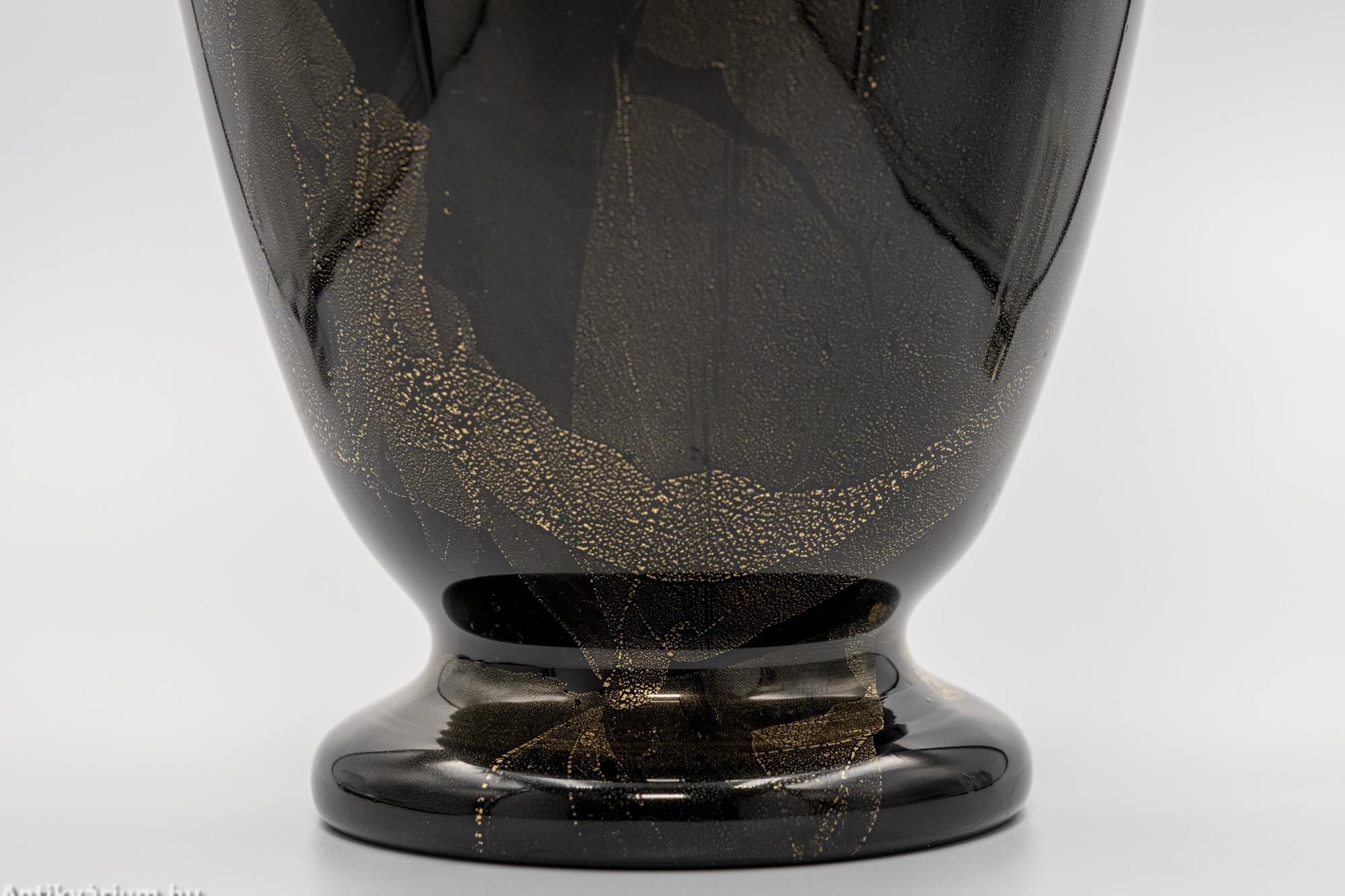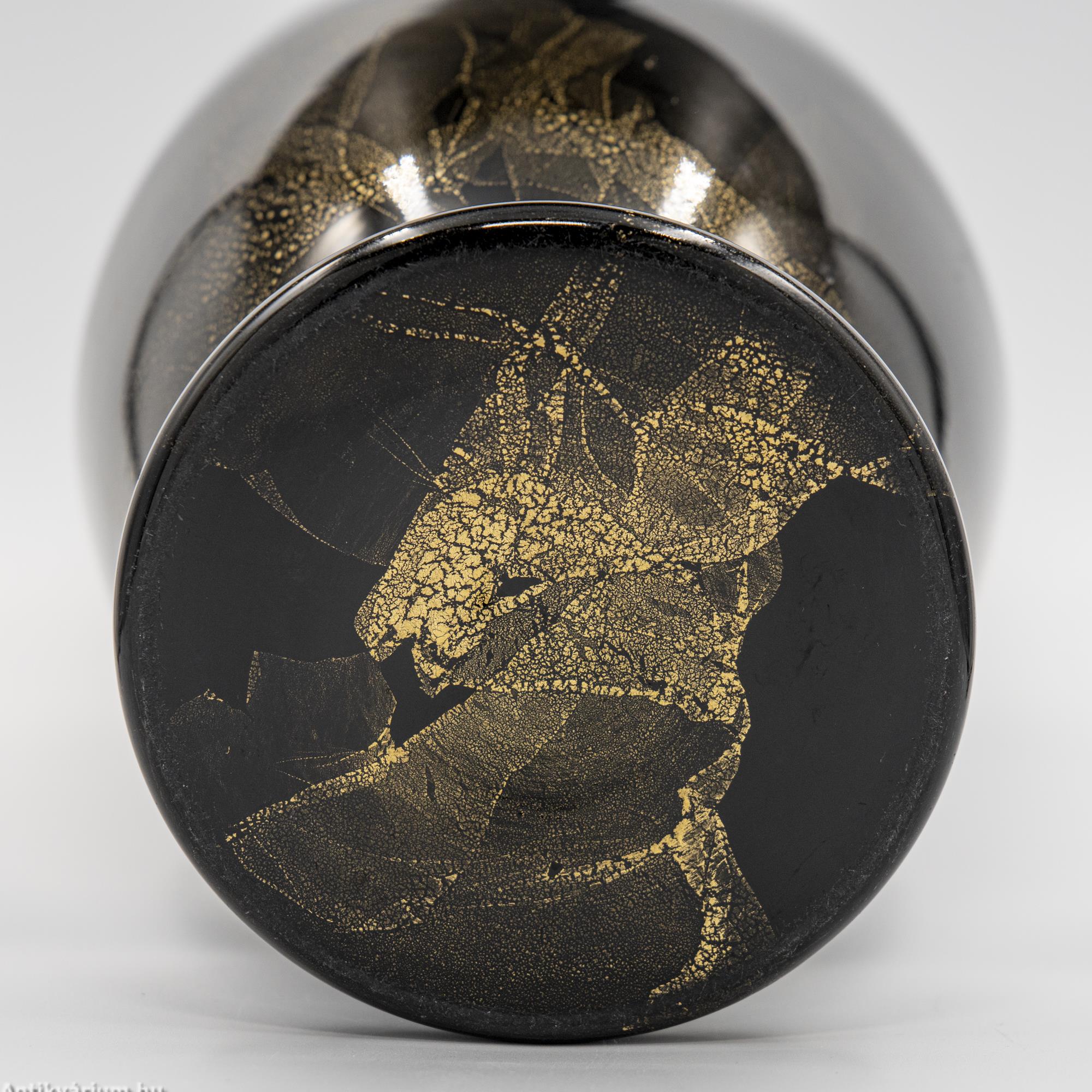 Archimede Seguso art deco fekete - aranyfóliás üveg váza 20. század első fele 33 cm