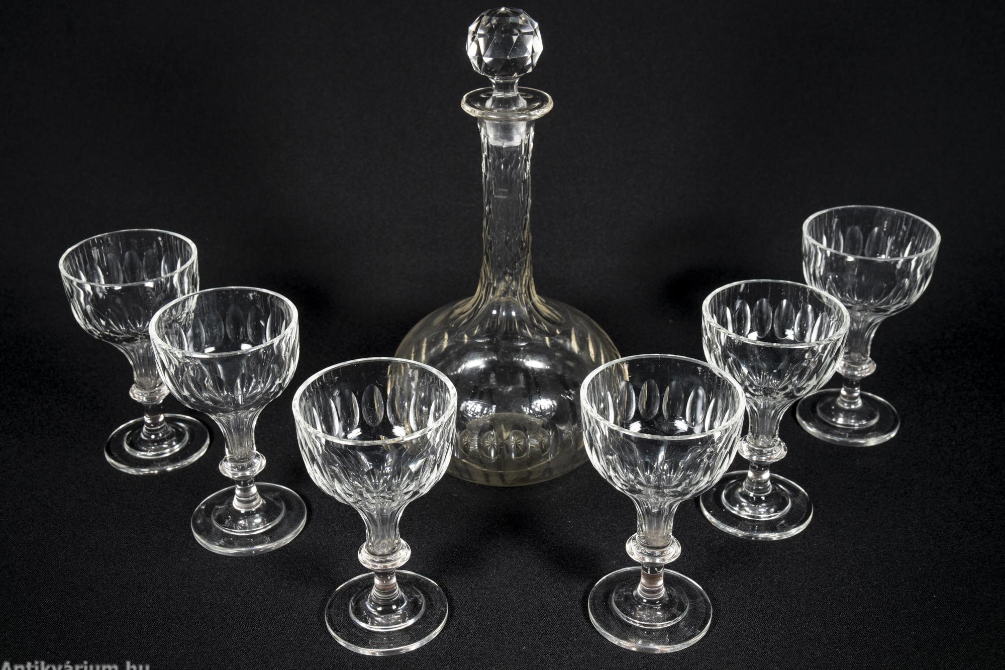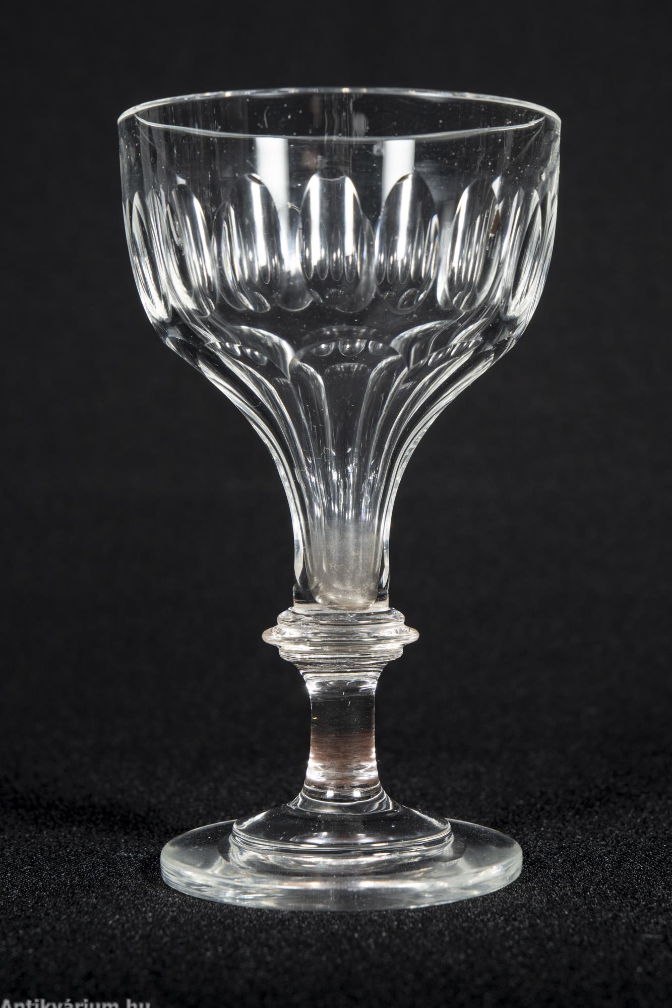 Csiszolt 7 darabos színtelen boros pohár szett 19. század második fele