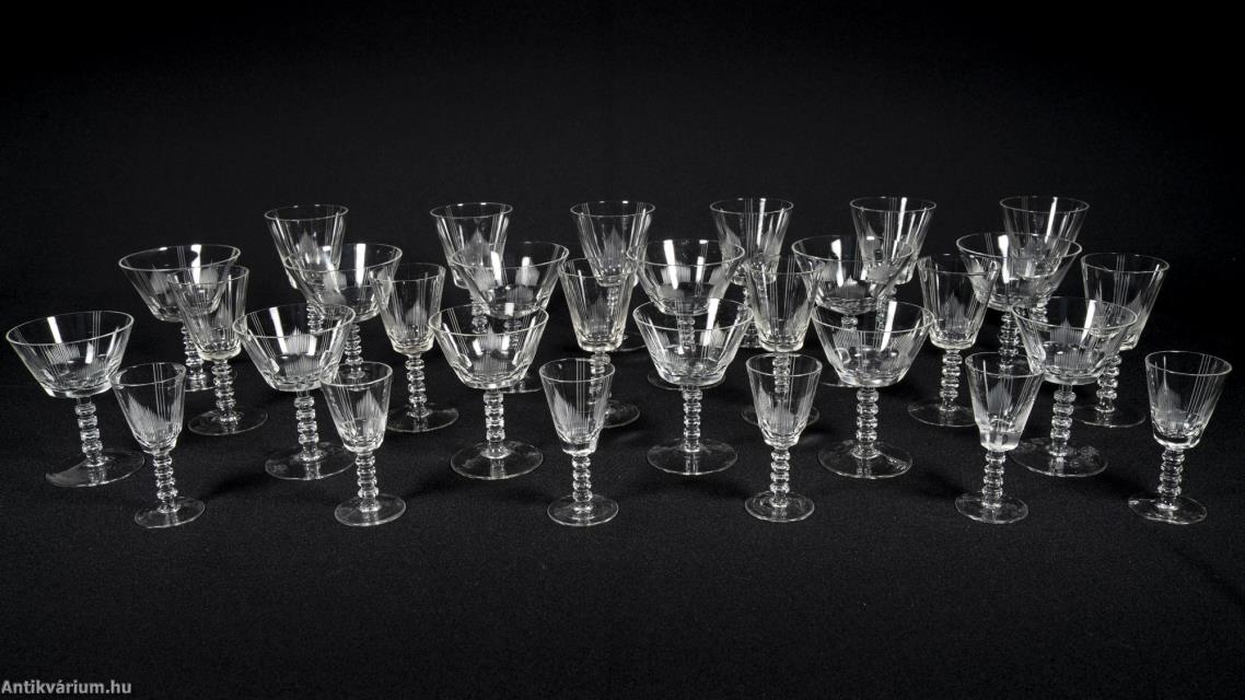 Bécsi art deco 30 darabos csiszolt üveg pohár készlet 20. század eleje